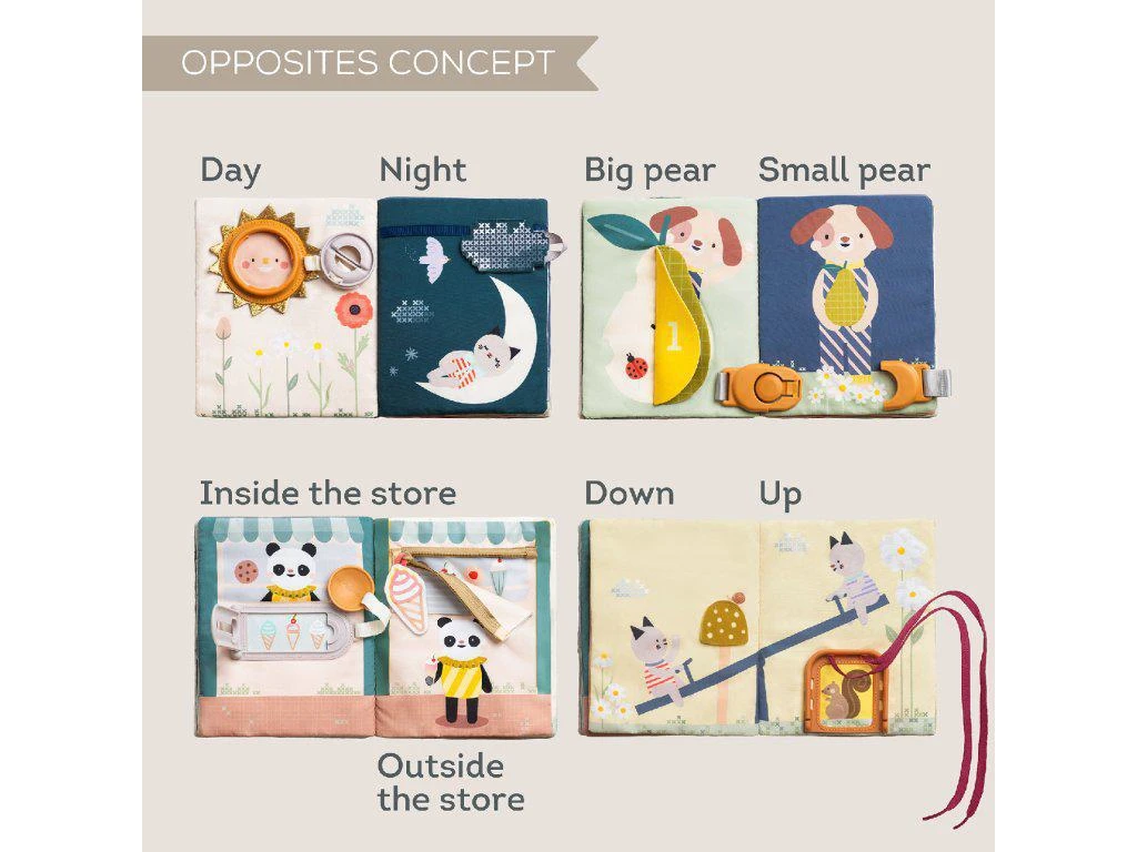 Objevování světa protikladů nebylo nikdy zábavnější! Tato barevná a interaktivní kniha plná různorodých aktivit představuje dětem základní pojmy jako velký a malý nebo den a noc a přitom rozvíjí jemnou motoriku, jazyk i první matematické dovednosti.