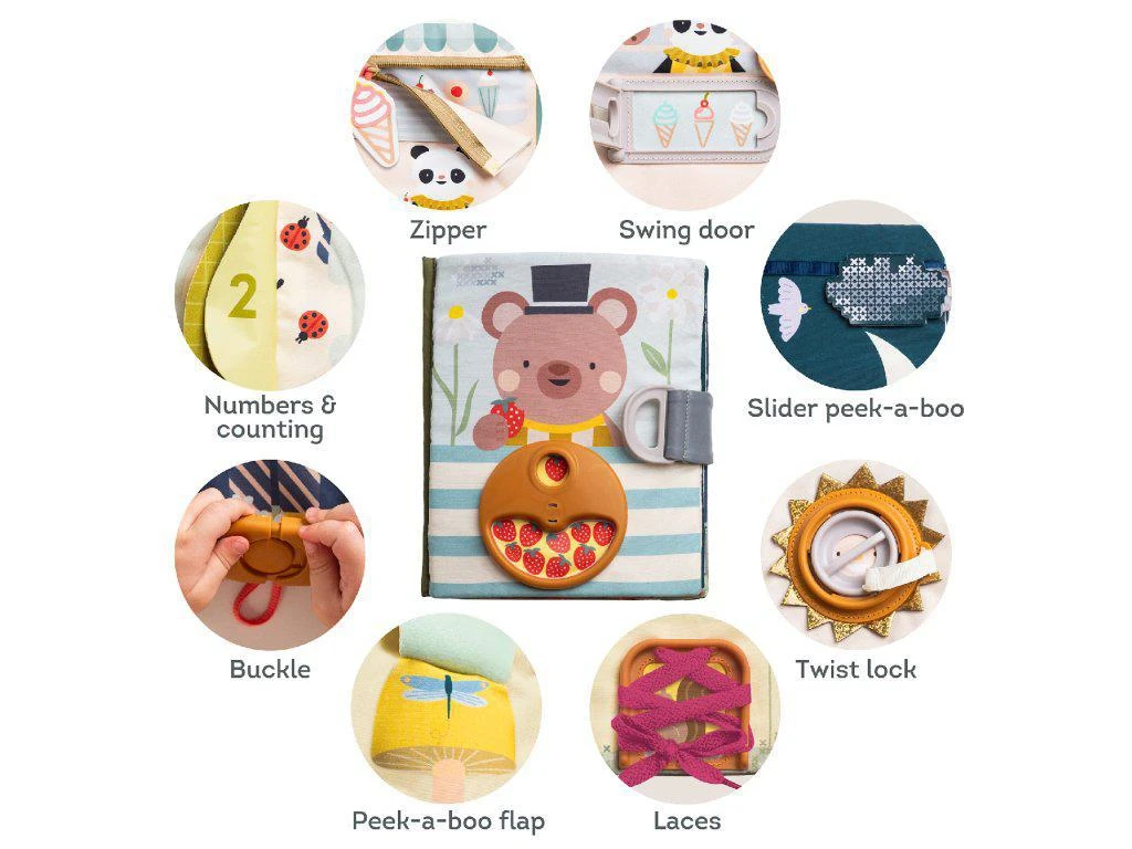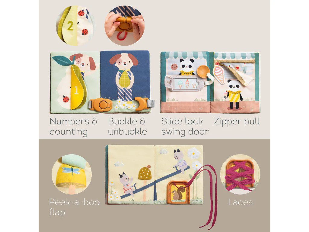 15 interaktivních aktivit - zipy, přezky, tkaničky nebo schovávačky – vše, co malé ručičky potřebují k procvičení dovedností jako je zapínání, vázání a oblékání . Praktická na cesty - lehká a kompaktní, zabaví dítě kdykoliv a kdekoliv, ideální do auta, do kočárku nebo na návštěvu .