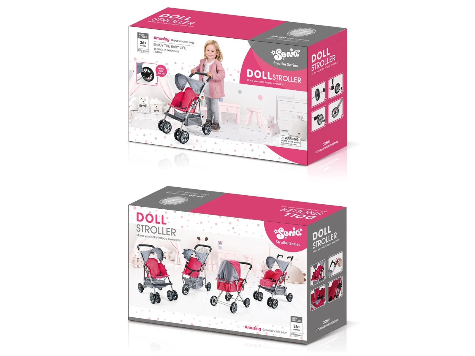 Kočárek je lehký, snadno ovladatelný a svou velikostí perfektně padne dětem. Skvělý doplněk pro rozvoj fantazie, empatie i sociálních dovedností.