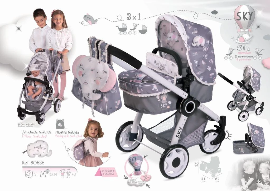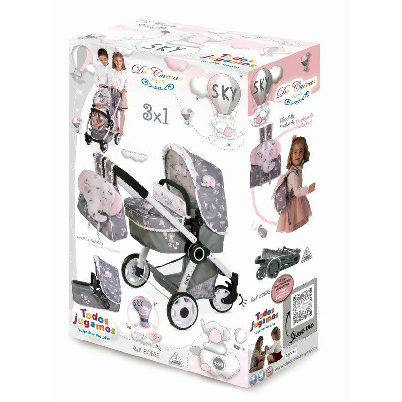 Kočárek pro panenky 3 v 1 s batůžkem DeCuevas - SKY