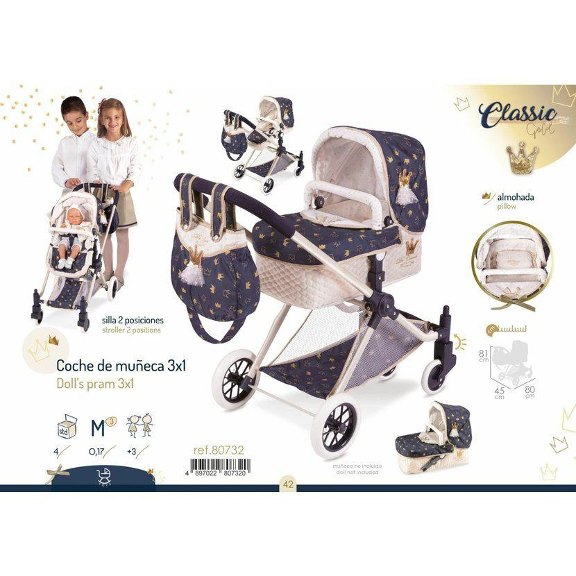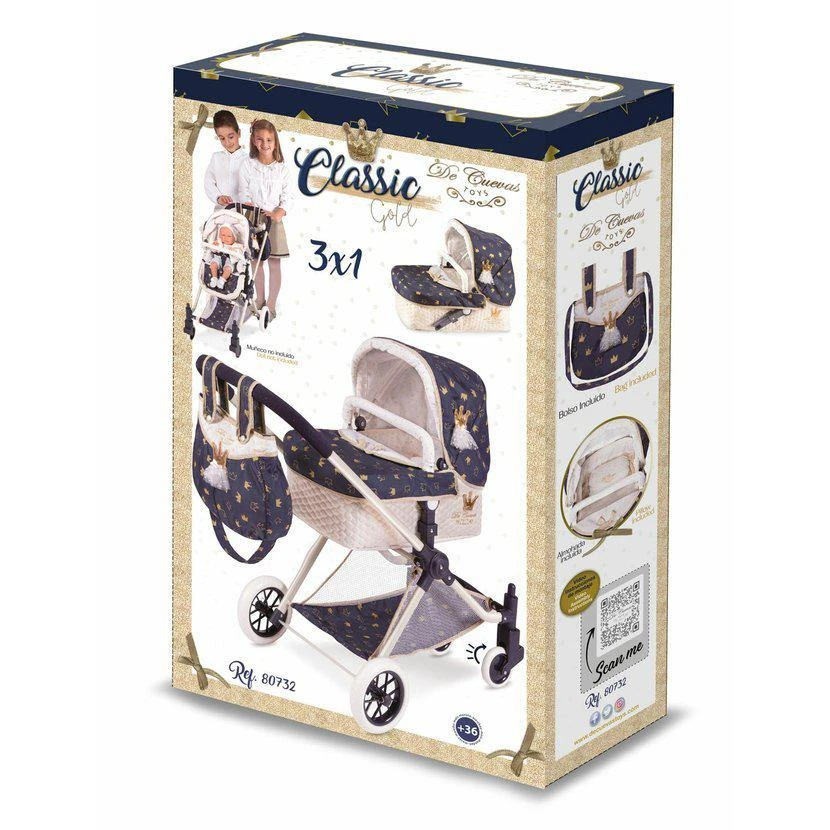 Kočárek pro panenky 3 v 1 XL s taškou DeCuevas - Classic Gold
