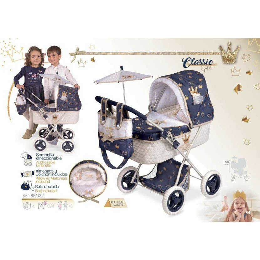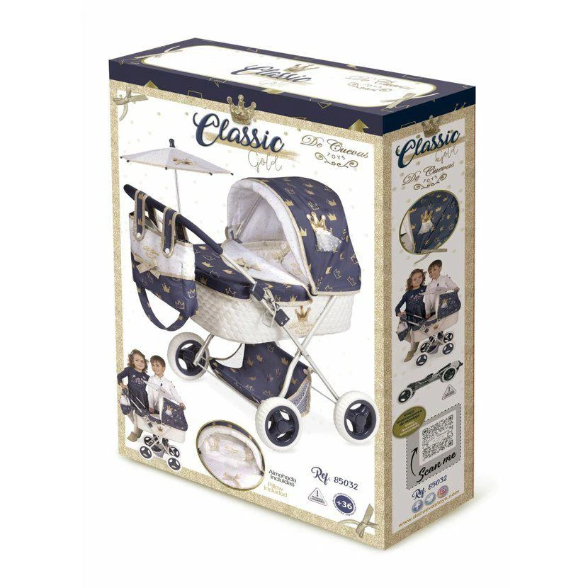 Kočárek pro panenky se slunečníkem DeCuevas - Classic Gold