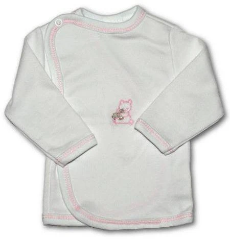 Kojenecká košilka zavinovací VYŠÍVANÁ (BÍLO-RŮŽOVÁ)
