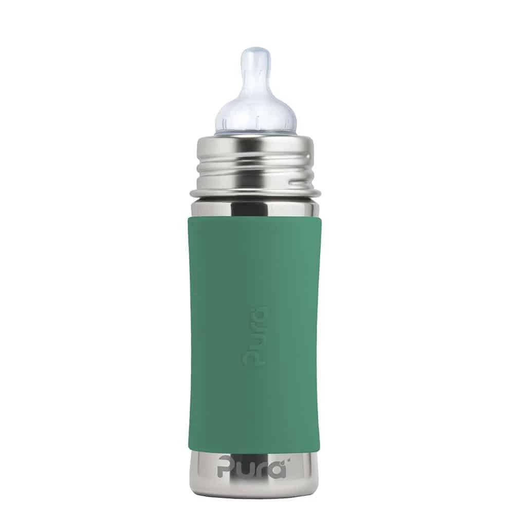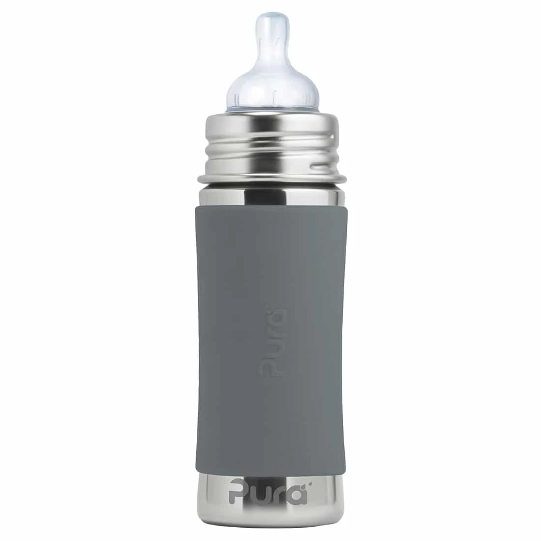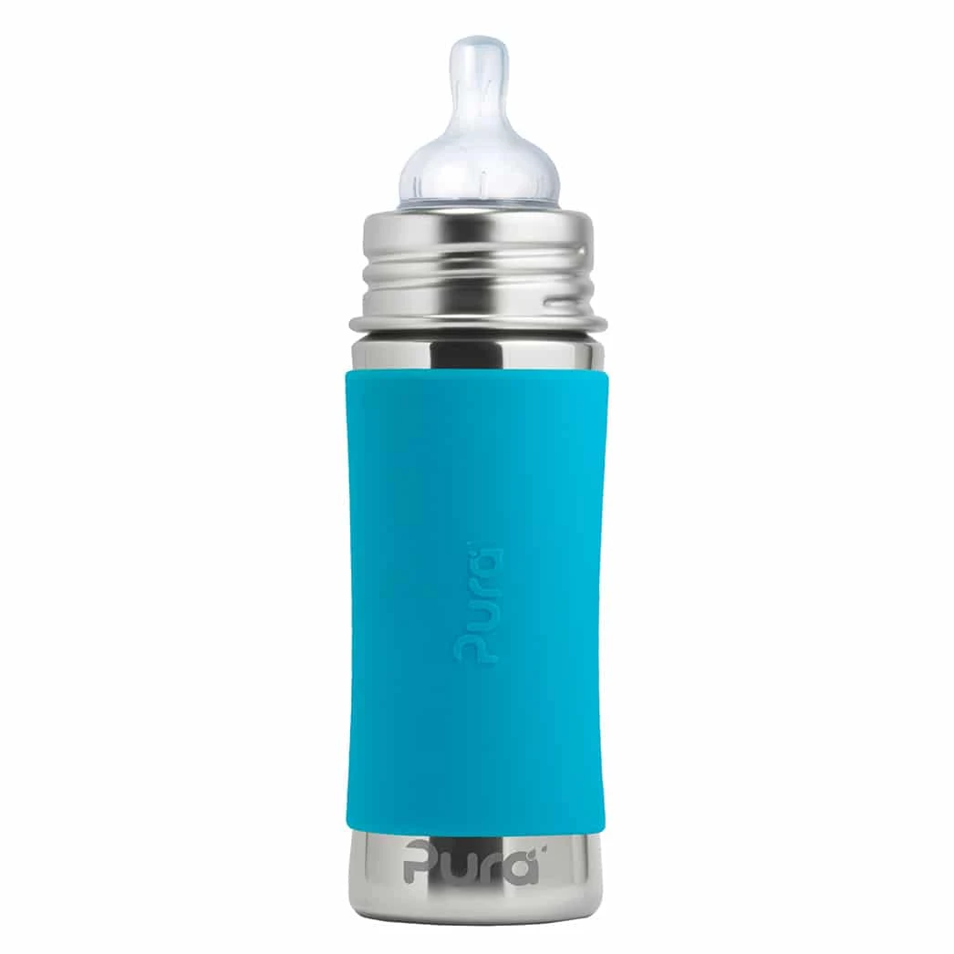 Nejbezpečnější, nejuniverzálnější, lehká a nerozbitná ekologická láhev, která získala více než 35 ocenění. První láhev na trhu 100% bez plastových částí a jediná láhev, která získala certifikát NonToxic Certified. Baby Grows… Bottle EvolvesTM - patentovaný systém umožňuje použít jakoukoliv Pura láhev s jakýmkoli Pura uzávěrem. Jednoduše tak změníte kojeneckou láhev na láhev s náustkem, brčkem nebo sportovním uzávěrem, nebo s použitím těsnícího disku na skleničku na příkrmy a drobné občerstvení. Jednu láhev tak můžete používat roky a zároveň šetříte peníze i životní prostředí. Láhev a objímka jsou vyrobeny z antibakteriální nerezové oceli # 304 (18/8) a ostatní části ze silikonu nejvyšší medicínské kvality.