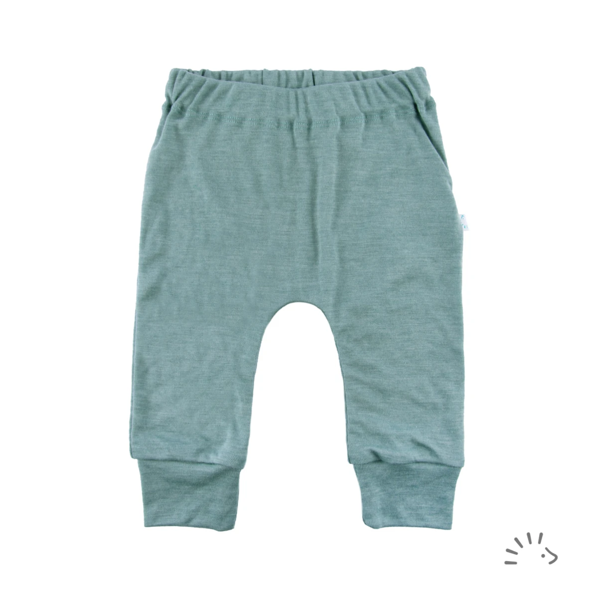 Kojenecké kalhoty merino vlna Sage Green PoPoLiNi