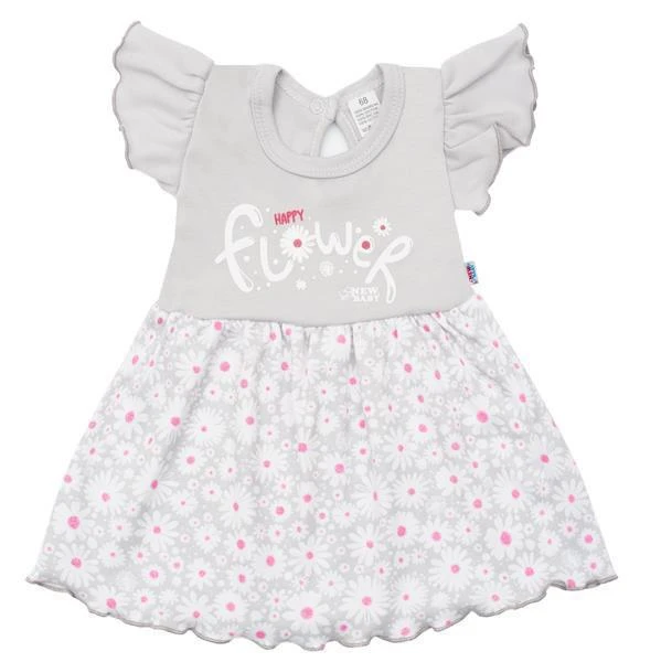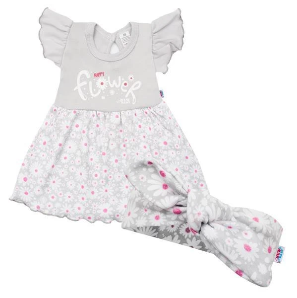 Kojenecké letní bavlněné šatičky s čelenkou New Baby Happy Flower šedé