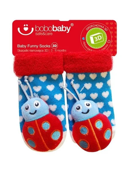 Kojenecké ponožky s chrastítkem 0 - 12 měsíců MODRÉ s beruškou