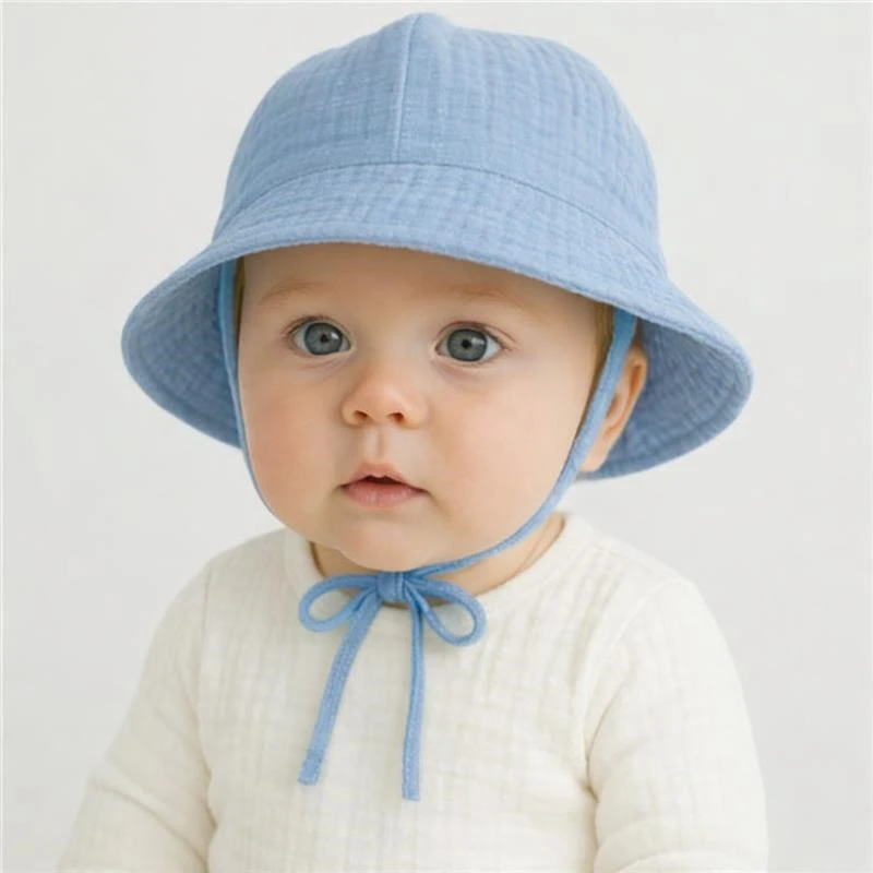 - Letní čepice, kšiltovky, kloboučky, čelenky mušelín, pro kluky, modrá, zavazovací