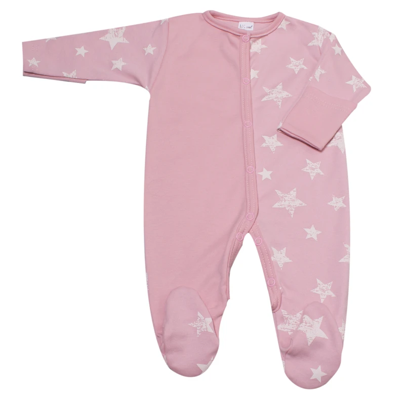Kojenecký overal dlouhý rukáv/nohavice s rukavičkami Hvězdy MKcool Starorůžový