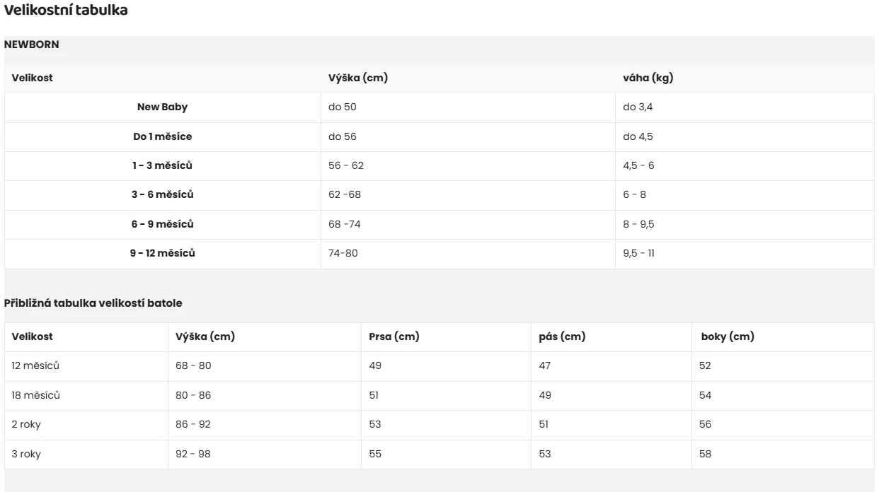 | Velikost | 56 / 62 / 68 / 74 / 80 / 86 |
