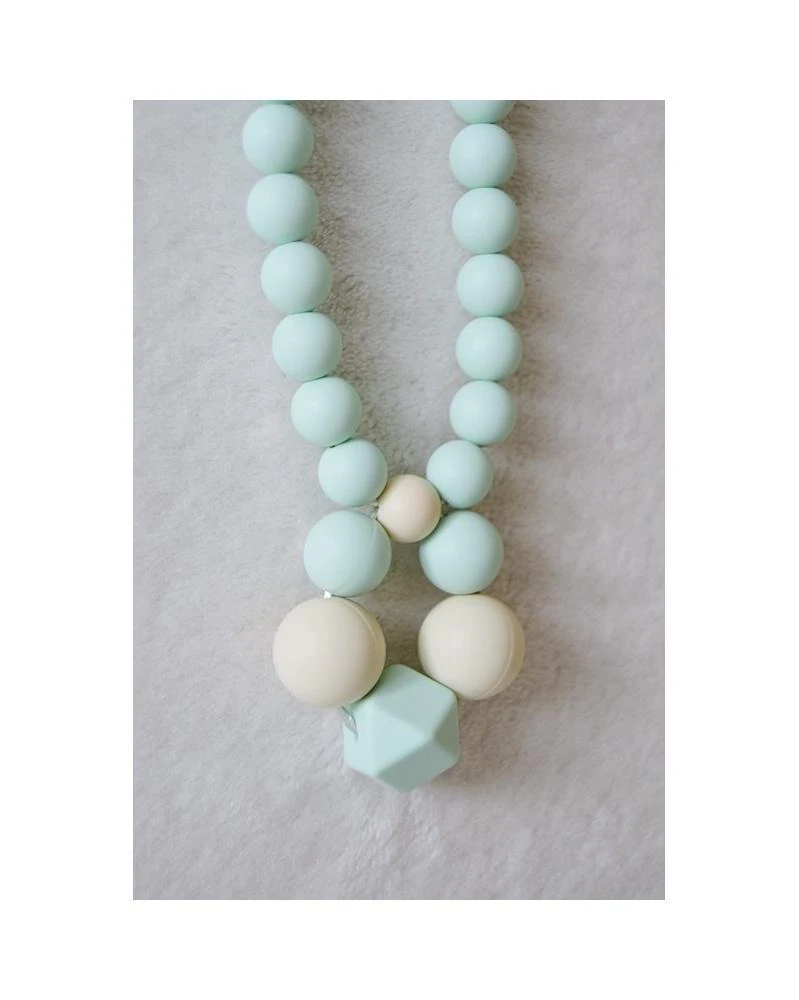 Korále jsou vyrobeny z měkkého potravinového silikonu, který neobsahuje žádné zdraví škodlivé látky jako BPA, ftaláty, olovo, kadmium nebo těžké kovy a je velmi příjemný na dotek.