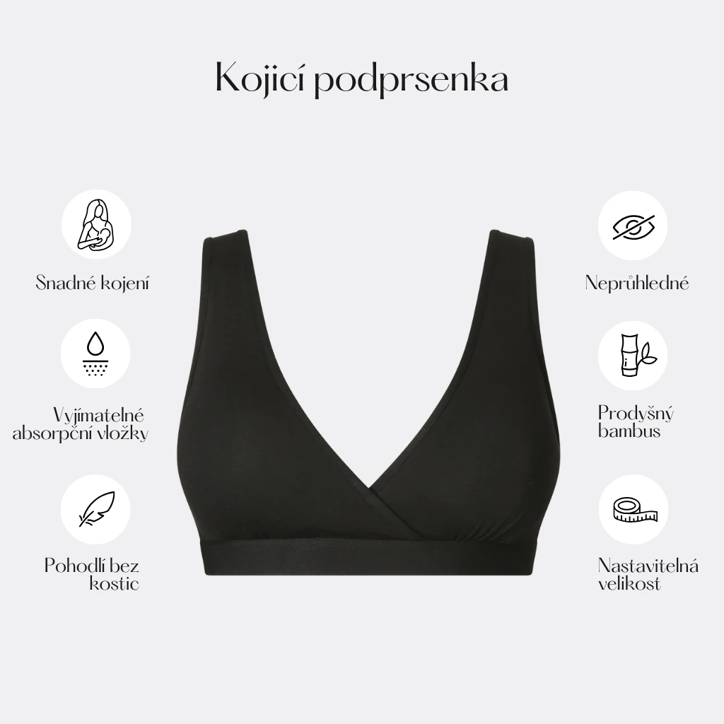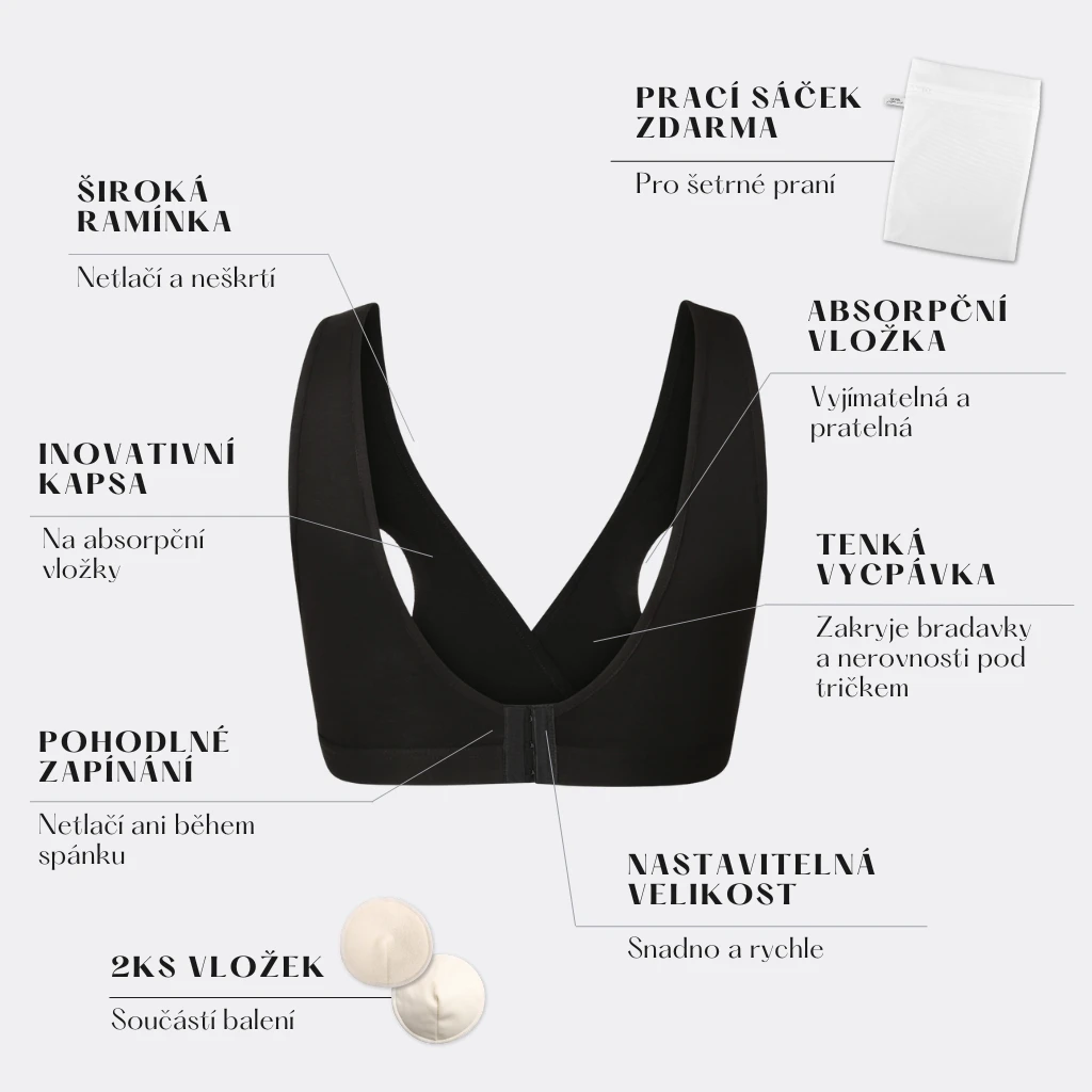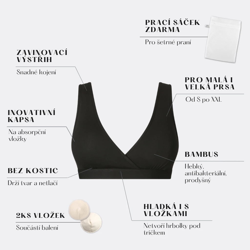 Kojicí podprsenka bambus Nuuma Black s vyjímatelnými vložkami + prací sáček Moniel