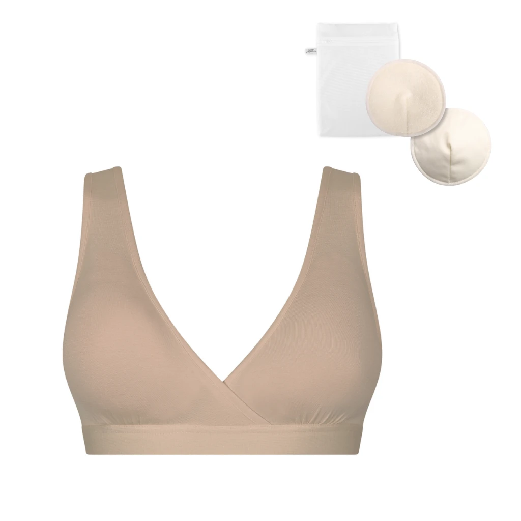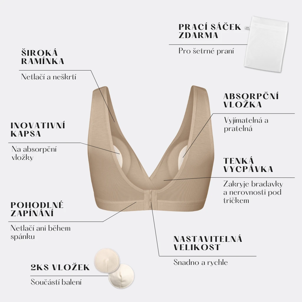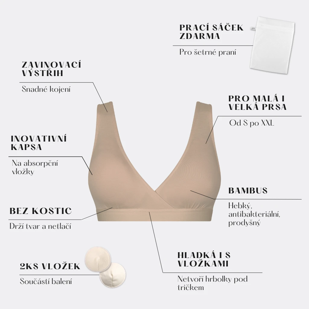 Kojicí podprsenka bambus Nuuma Nude s vyjímatelnými vložkami + prací sáček Moniel
