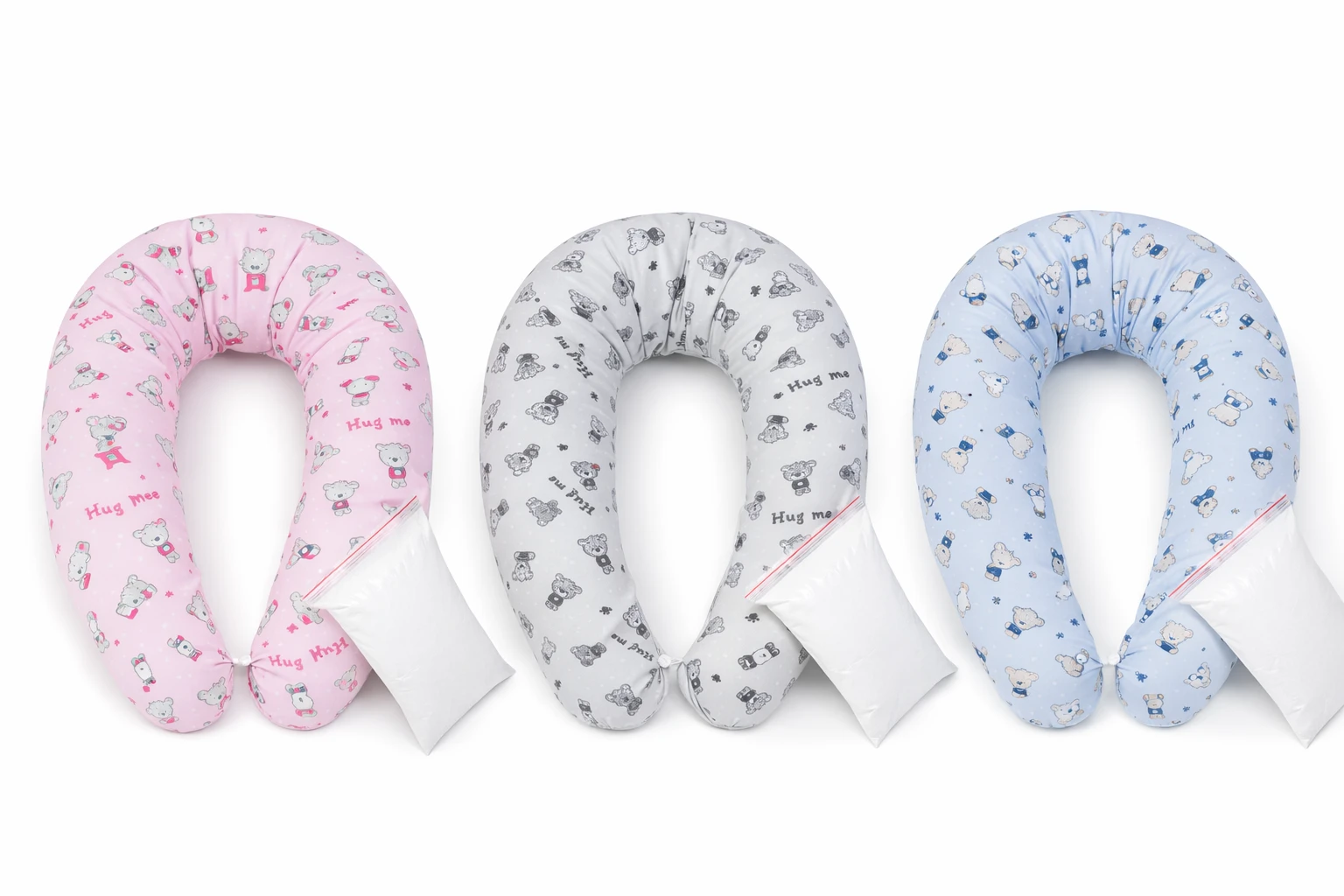 - z bezpečnostních důvodů je zip našitý v jedné z noh sypku. Pokud by se potah kojícího polštáře nedopatřením odepl, tak nehrozí, že se miminko dostane k druhému zipu na sypku a tudíž nehrozí nebezpečí spolknutí polystyrenových kuliček. Je proto třeba povléknou vrchní potah tak, aby zdrhovadlo bylo na druhé straně než u sypku.