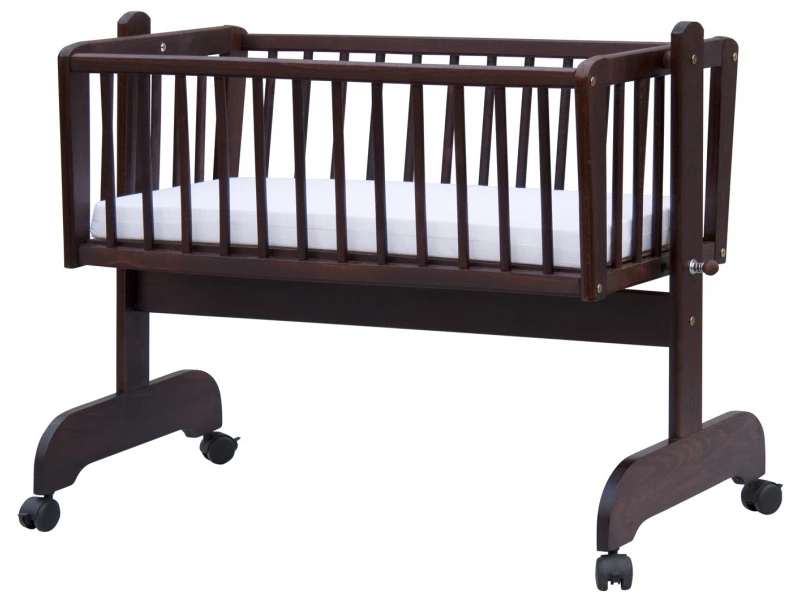 Konstrukce kolébky umožňuje houpání nebo můžete kolébku jednoduše proti houpání zafixovat. V ceně výrobku jsou i 4ks koleček pro snazší pohyb kolébky po místnosti Všechny kolečka mají brzdu pro zajištění kolébky proti pohybu.
