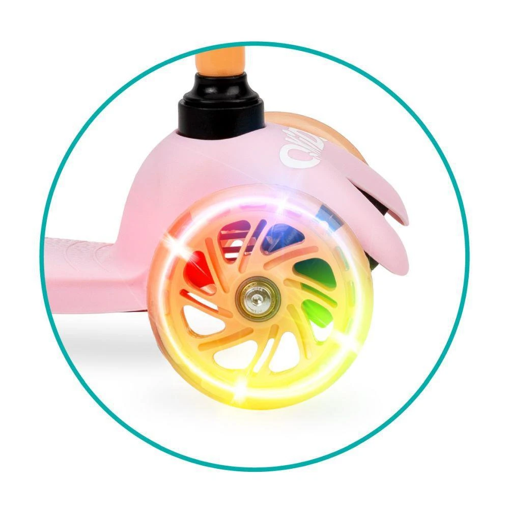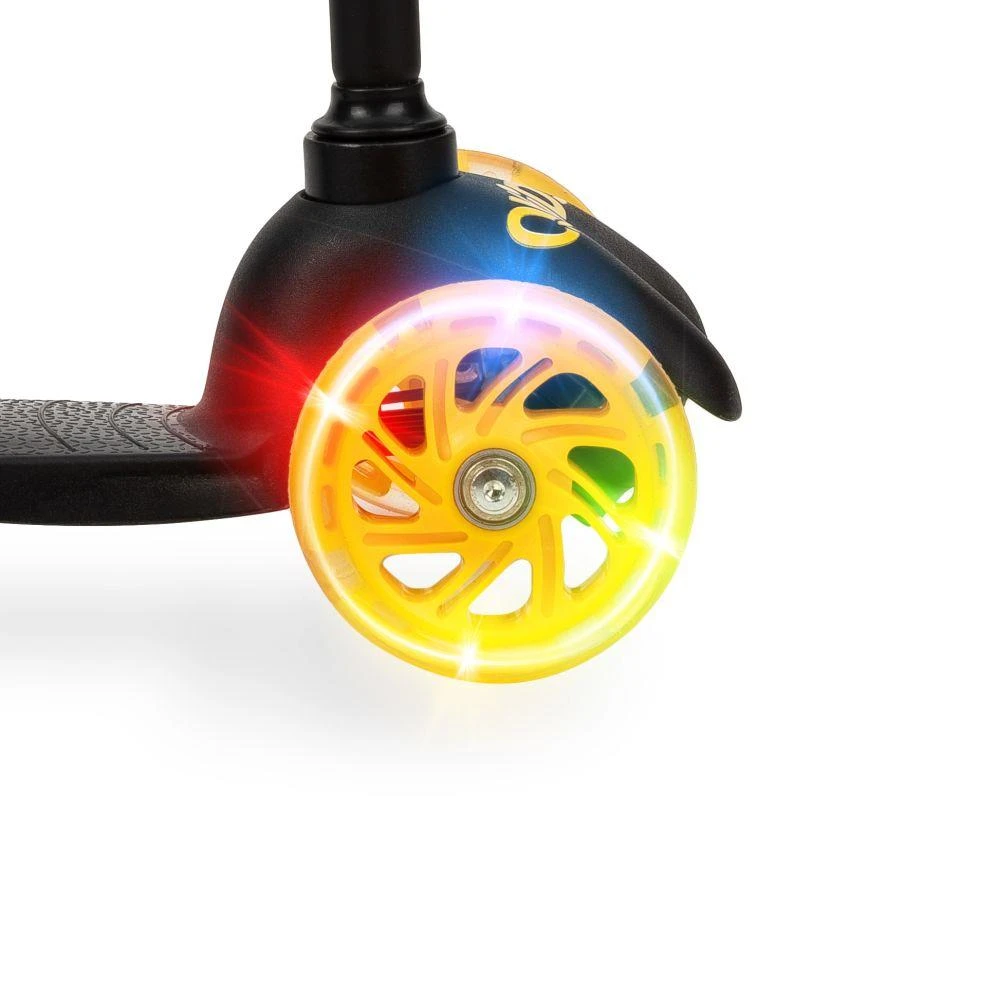 Kola mají navíc zabudovaná LED světla, která fungují na principu dynama. Čím rychleji batole jede, tím silnější jsou světla. Tato možnost je velmi důležitá, když se setmí – zvyšuje viditelnost na chodníku.