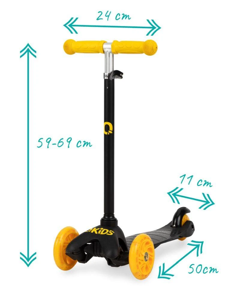 - Nastavte výšku řídítek podle výšky svého dítěte – naše koloběžka má 3 úrovně nastavení od 59 do 68 cm
