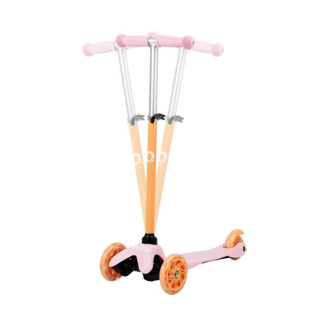Nespornou výhodou je možnost koloběžku složit. Naše koloběžka se skládá stisknutím tlačítka. Tato možnost je nesmírně důležitá, když se vaše dítě náhle rozhodne pokračovat v chůzi během procházky. Po skončení sezóny jej navíc můžete uložit do skříně nebo pod postel, takže zabere opravdu málo místa.