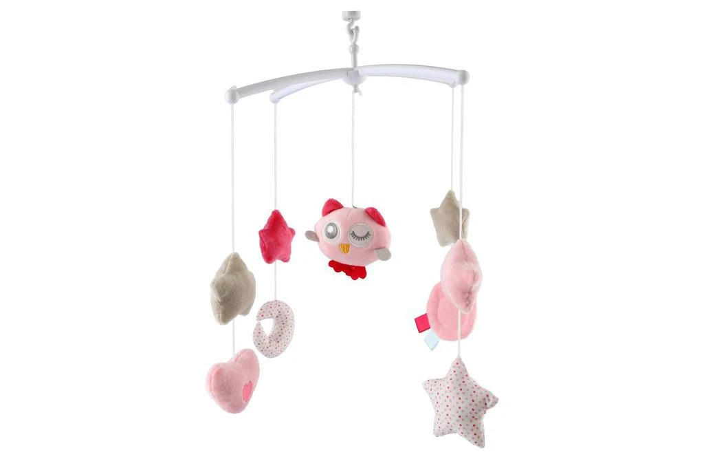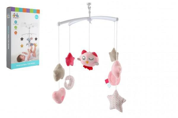 Kolotoč se sovičkou nad postýlku s natahovacím hrajícím strojkem růžový
