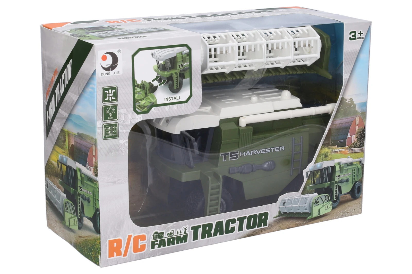 Velikost 24 cm. Frekvence 27 nebo 40MHz. Bateriový pack 3.7V do kombajnu součástí, 2xAA do ovladače nejsou součástí. USB kabel součástí. Přepínač ON/OFF na spodní straně traktoru.