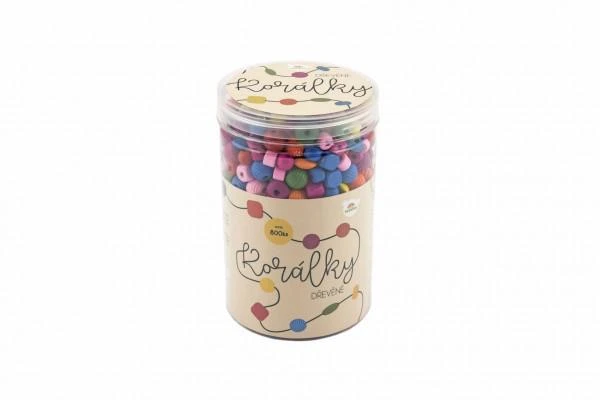Dětské barevné korálky pro malé parádnice a nejen pro ně. V sadě najdete různé druhy a tvary korálků, které mají pestré a veselé barvy. Součástí jsou gumičky, na které si děti mohou navlékat korálky dle své fantazie, náramky a řetízky jsou poté roztahovací. Vzniknou tak jedinečné módní doplňky. Plastová dóza obsahuje cca 800 ks korálků. Dřevěné korálky jsou vhodnou hračkou pro rozvoj dětské motoriky, trpělivosti i fantazie.