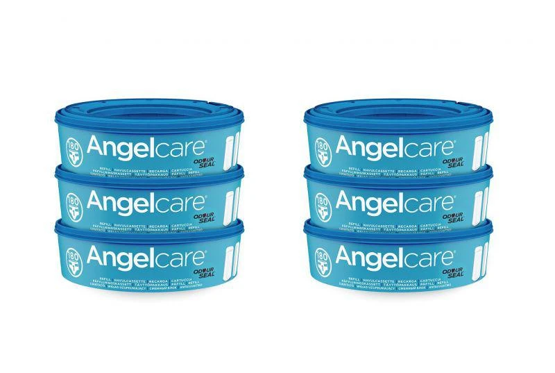Kazeta obsahuje fólii – „nekonečný“ pytel – pro použité pleny. Kazeta Angelcare je pro všechny koše Angelcare a všechny velikosti plenek jednotná, odpadají starosti s hlídáním velikostí apod.