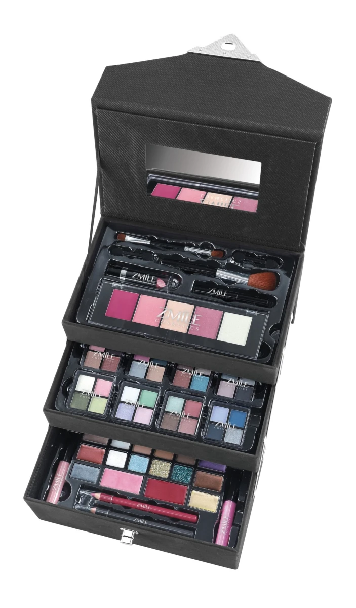 Obsahuje 32 ks očních stínů 3× tvářenka, 2x oční linka, 3x barva na obočí, 1x vosk na obočí, 8× krémové oční stíny, 4x třpytkový krém na tělo, 2x krémová rtěnka, 4x korektor, 2x lesk na rty, 1× rtěnka, 1x řasenka, 1× tužka na oči, 1× tužka na rty, 1x štětec, 5× oboustranný aplikátor a integrované zrcátko. Dermatologicky testováno, vyhovuje přísným normám EU.