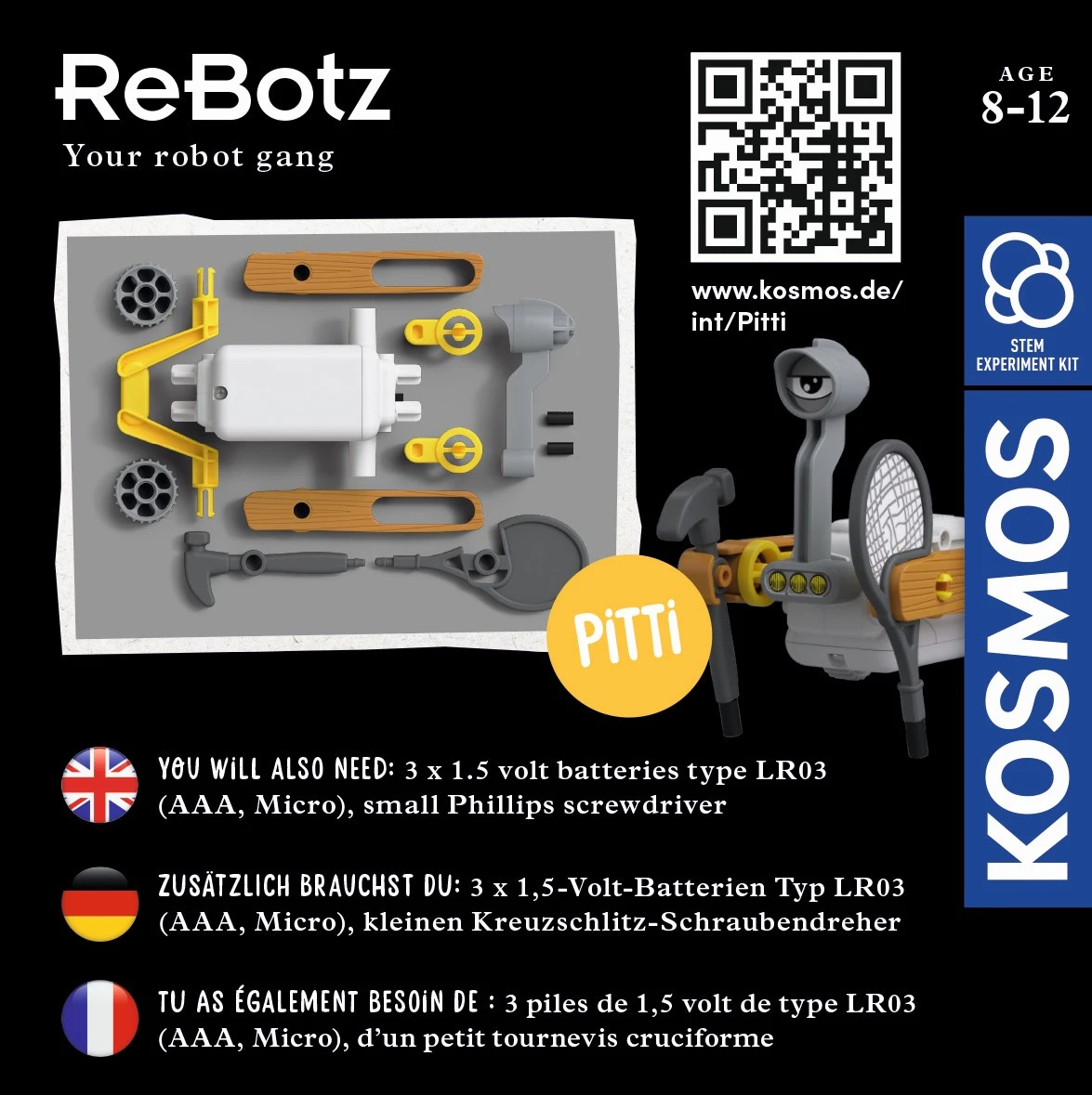Robot Pitti chodící Kosmos je zvídavý vesmírný průzkumník, který s lehkostí a odvahou kráčí napříč neznámými světy a proměňuje každý krok v nezapomenutelné dobrodružství mezi hvězdami.