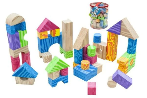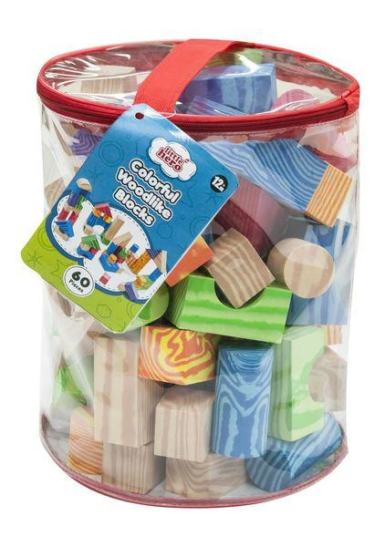 Kostky pěnové barevné měkké 60ks imitace dřeva v plastové tašce