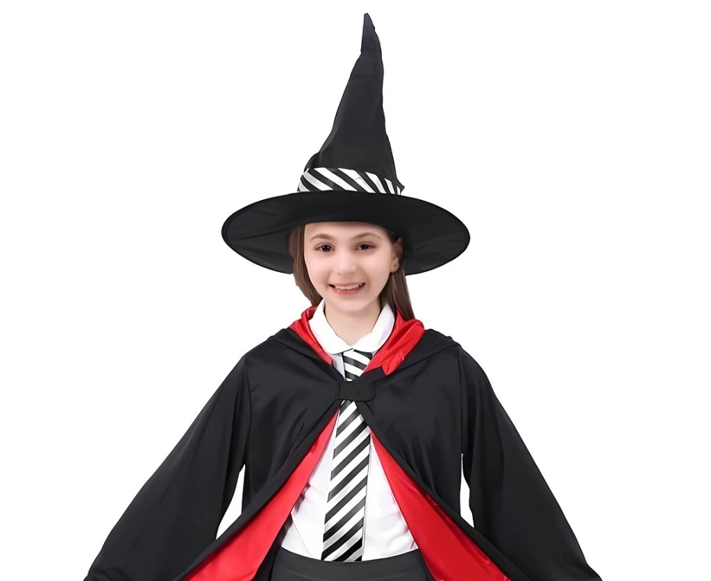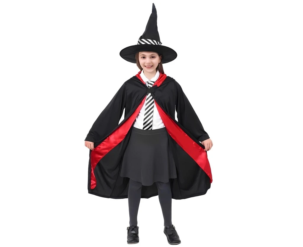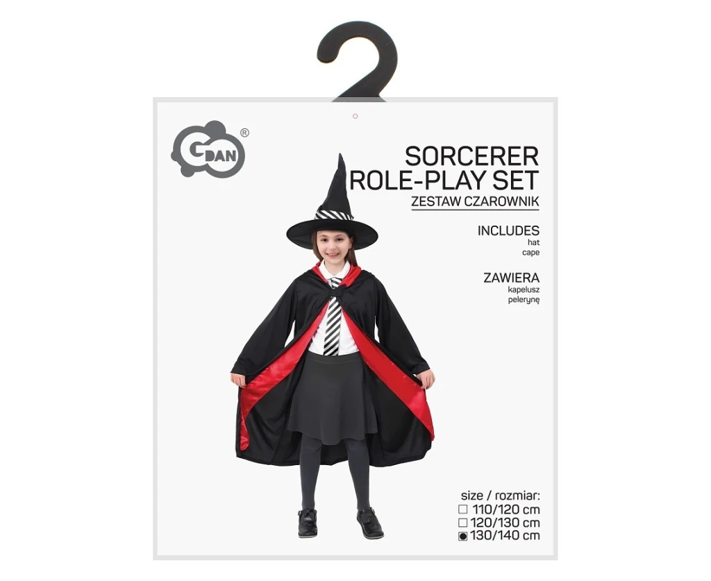 Kostým obsahuje kouzelnický klobouk a kouzelnický plášť.
