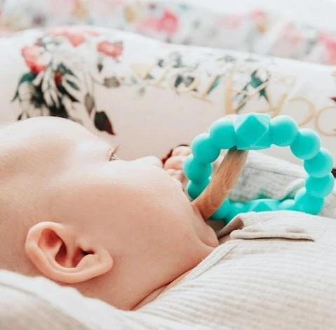 Odolné bukové dřevo je ideálním materiálem pro žvýkání, protože je přirozeně antibakteriální a hladký povrch kroužku poskytuje miminku dostatečnou pevnost, aby prostřednictvím žvýkání ulevilo od bolesti při stresujícím prořezávání zoubků.