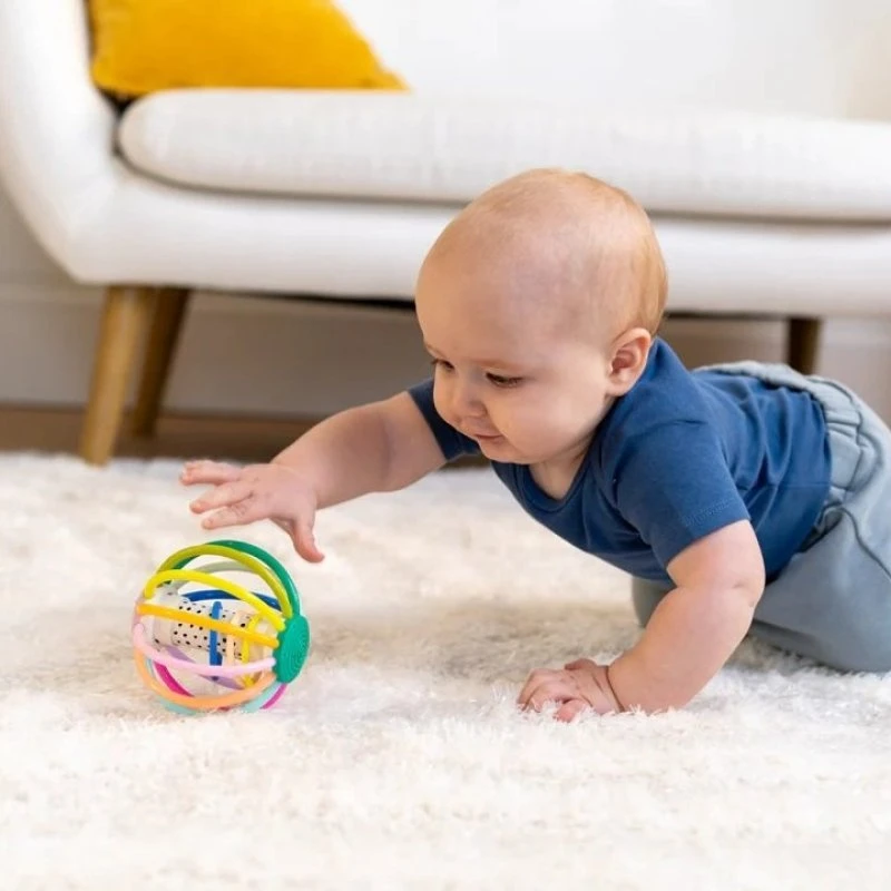 Kousátko ve tvaru míčku je ideální nejen k uchopení, třesení a kutálení, ale napomáhá také tlumit bolest dásní při prořezávání prvních zoubků.