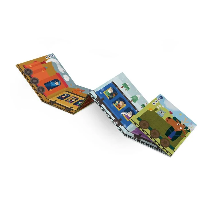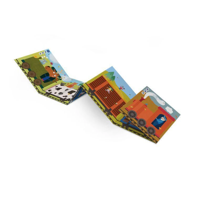 Kniha Vlakem celým rokem je prvním titulem ve formátu rozkládacího harmonikového leporela a je tak vhodná i pro ty nejmenší čtenáře. Jedna strana leporela je věnovaná nákladnímu vlaku a zvířátkům, druhá strana pak osobnímu vlaku plnému cestujících.