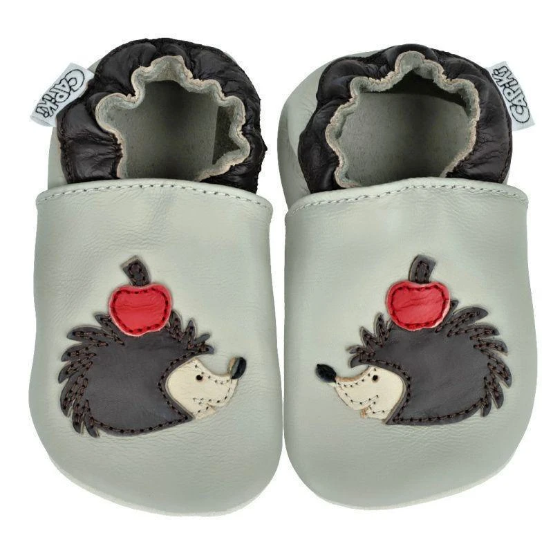 Jako všechny výrobky z kůže, nelze ani kožené capáčky prát (kůže by ztratila pružnost a mohly by se objevit nevzhledné prasklinky). Doporučujeme proto otírat navlhčeným hadříkem (podrážku i jemným kartáčkem), případně s malým přídavkem mýdla a nechat volně vyschnout (ne u zdrojů tepla). Nebo ještě lépe - použít prostředky na čištění kůže přímo určené, které pak využijete i pro další kožené botičky, které dětem koupíte. Na trhu například existují speciální čistící pěny (leather soap) Collonil a dalších značek. Pokud se vám podrážka zespodu špínou uhladí, stačí jen opět vyčistit a zdrsnit kartáčkem. Po kontaktu s vodou bývá kůže trochu tvrdší, stačí však jen vyschlé capáčky promnout mezi prsty a po chvíli nošení budou opět mekkoučké...