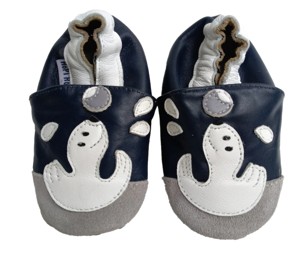 Kožené capáčky s dvojitou podrážkou a zdvojenou špičkou Hopi Go! Dvojitá měkká podrážka zajišťuje měkký došlap a větší izolaci od podlahy, zdvojená špička pomáhá udržet capáčky stále pěkné, neokopané. Podrážka z broušené kůže je přirozeně protiskluzová. Díky elastickému lemu okolo kotníků se capáčky nevyzouvají. Vyrábějí se z přírodní, kvalitní a prodyšné kůže, jsou měkké, lehké, komfortní a pohodlné, příjemné na nožce, zabraňují prochladnutí. Ideální pro všechna roční období. Pro tyto vlastnosti si je děti velice oblíbily. Jsou určeny pro děti od jejich prvních krůčků, batolecí období, ale i pro větší děti. Splňují všechny evropské bezpečnostní normy EN71BS5665.