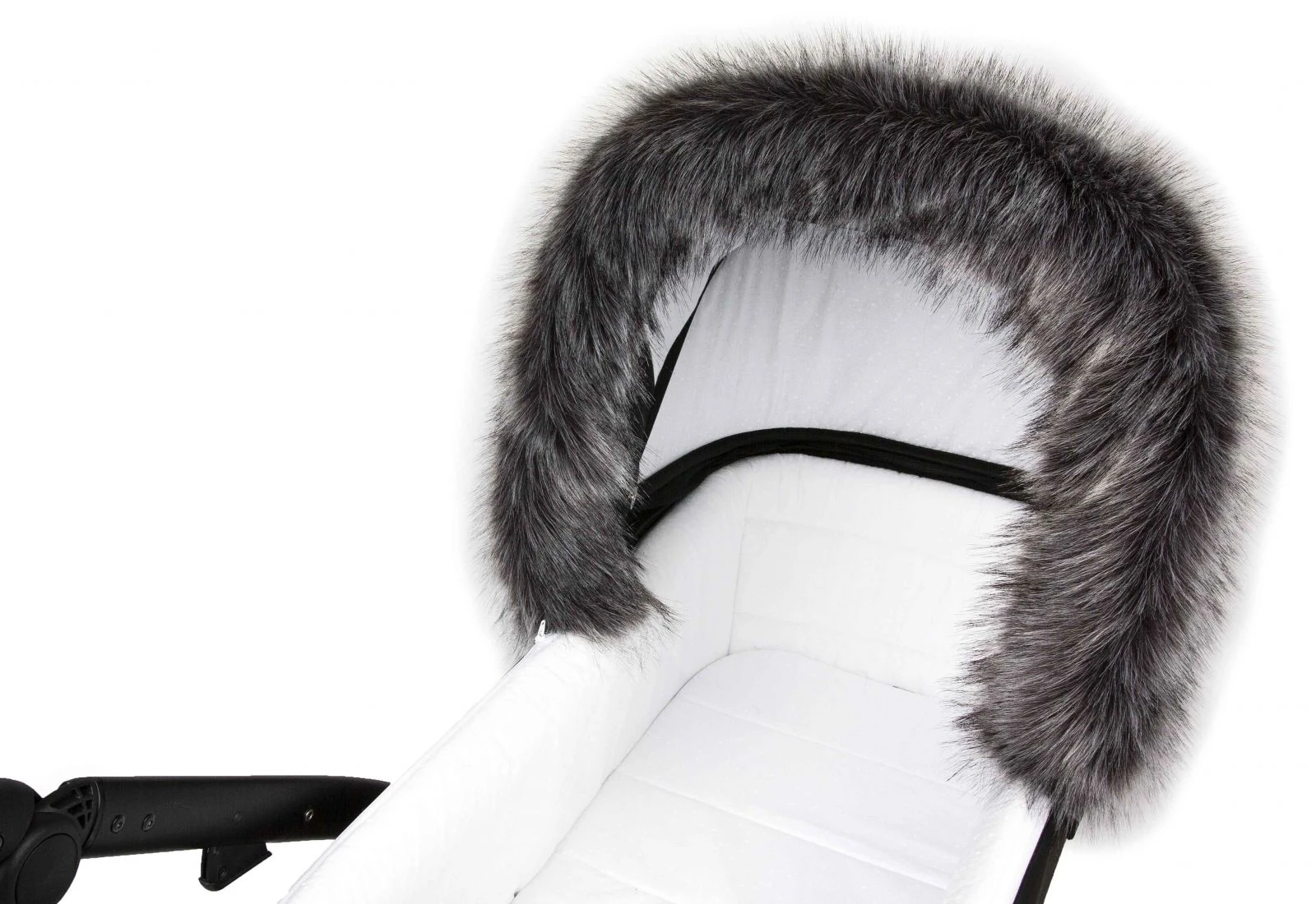 Univerzální lem na kočárek z umělé kožešiny určený na stříšku