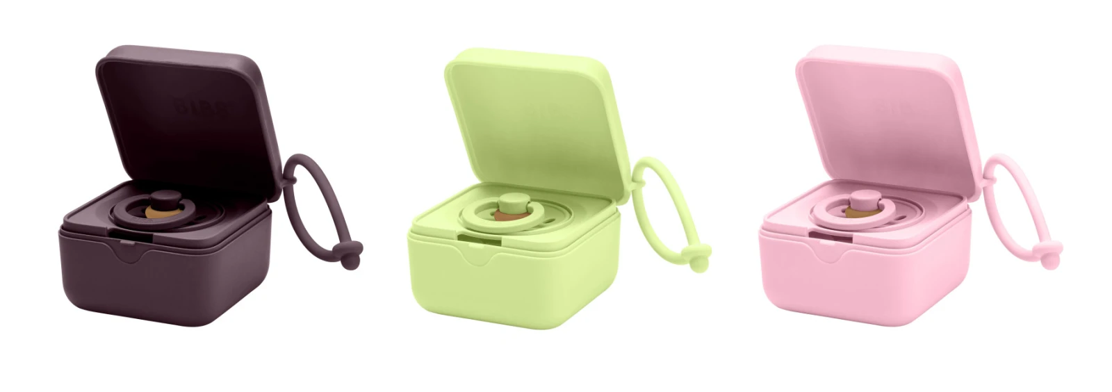 Bez použití vložky se vejdou až 3 dudlíky. S použitím vložky se vejde 1 dudlík a klip na dudlík. Z jedné strany je vložka určena na dudlíky kulatých tvarů jako BIBS Colour, DeLux nebo Boheme a po otočení je vhodná na dudlíky motýlkového tvaru jako BIBS Supreme nebo Couture. Lze použít ke sterilizaci dudlíku v mikrovlnné troubě. Vyrobeno ze 100% bezpečného potravinářského materiálu, proto je krabička vhodná i pro uskladnění drobného občerstvení. Navrženo a vyrobeno v Dánsku.
