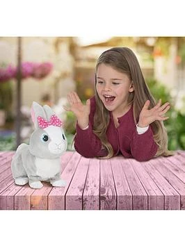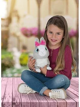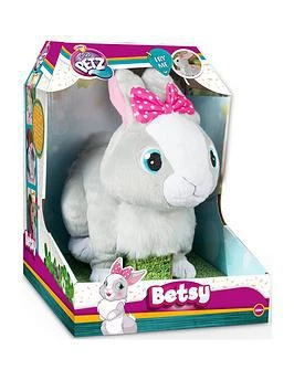 Každé dítě má rádo zvířátka a co teprve takové, které je sice hračka, ale chová se jako opravdové zvířátko? Králíček Betsy je plyšové zvířátko, které je jemné na dotek a také velmi zábavné. Šikovný interaktivní králíček reaguje na hlas a dokonce skáče. Nechte své dítě, aby rozvíjelo svou fantazii a pečovalo o plyšového králíčka Betsy, který bude reagovat na to, co dítě říká. Králíček se hodí na domácí hraní, ale vleze se i do tašky či do batůžku. Pořiďte svému dítěti krásného interaktivního králíčka Betsy s mašlí, který je 13 cm vysoký.