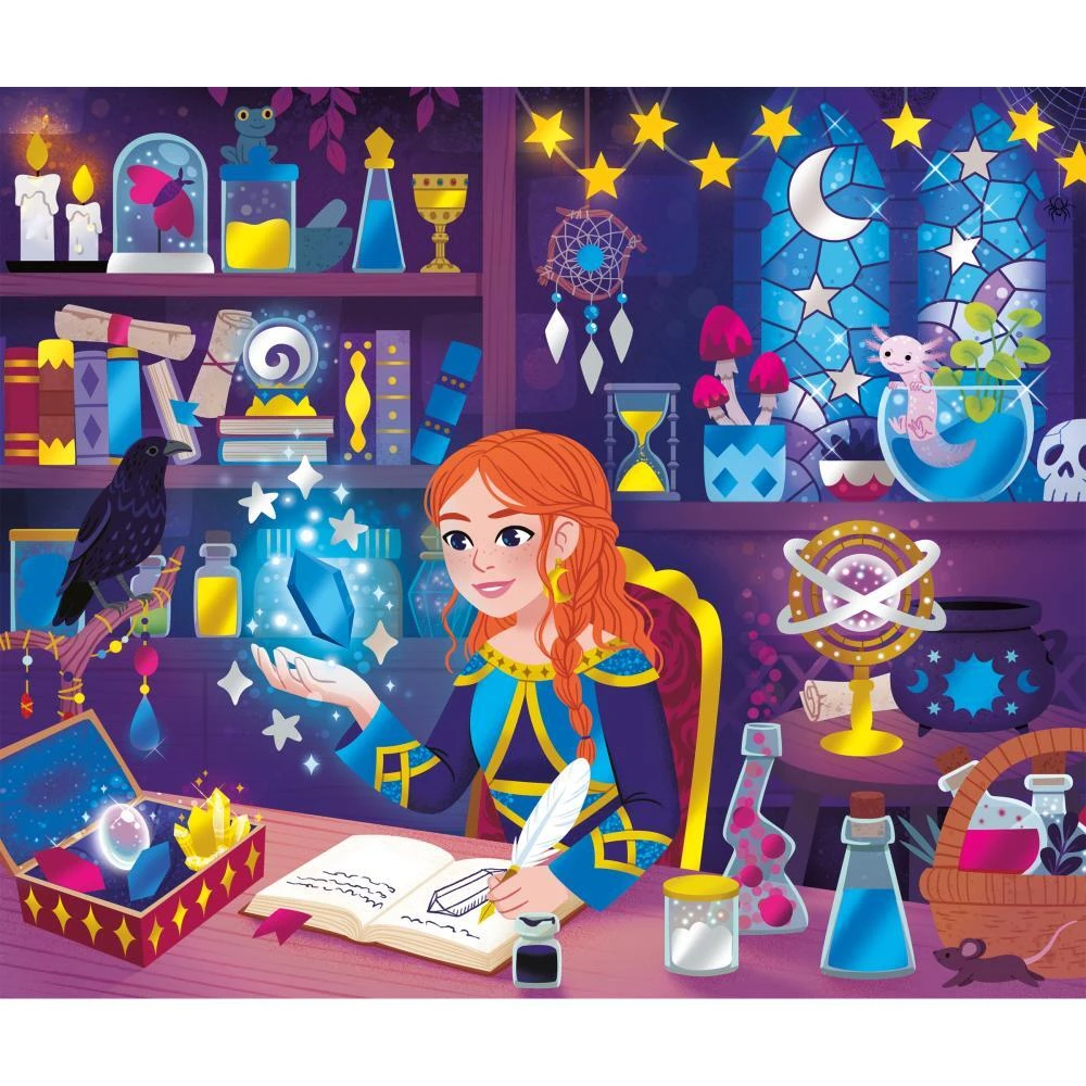 Dokončení každého obrazu zabere přibližně 20 minut. Po dokončení budou vypadat skvěle vystavené v místnostech vašich kouzelnických učňů. Prozkoumejte tajemství magie s kolekcí „Kouzelná škola“, kreativními sadami pro volný čas pro děti na téma kouzelnických učňů, pro tvořivé a kouzelné odpoledne!