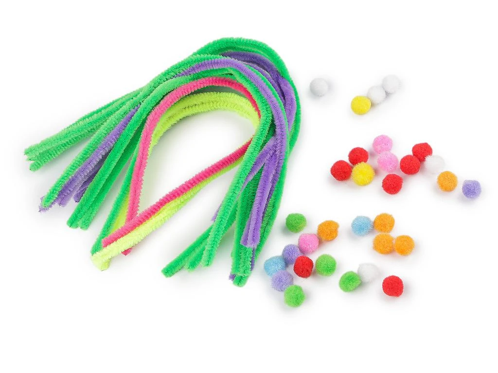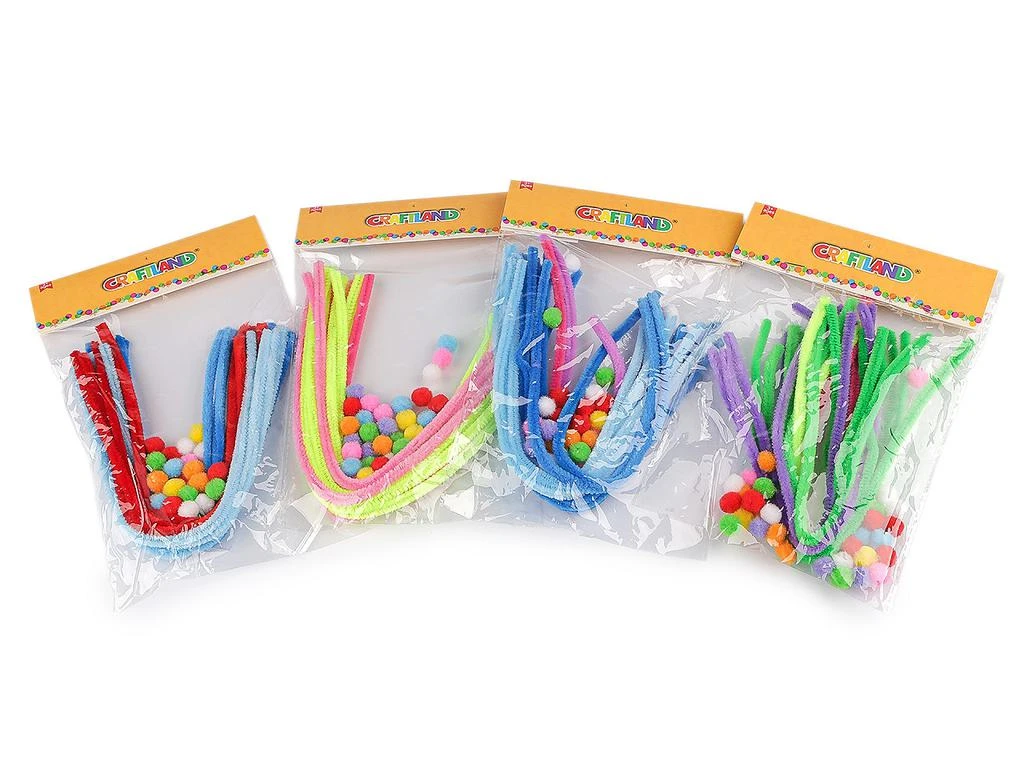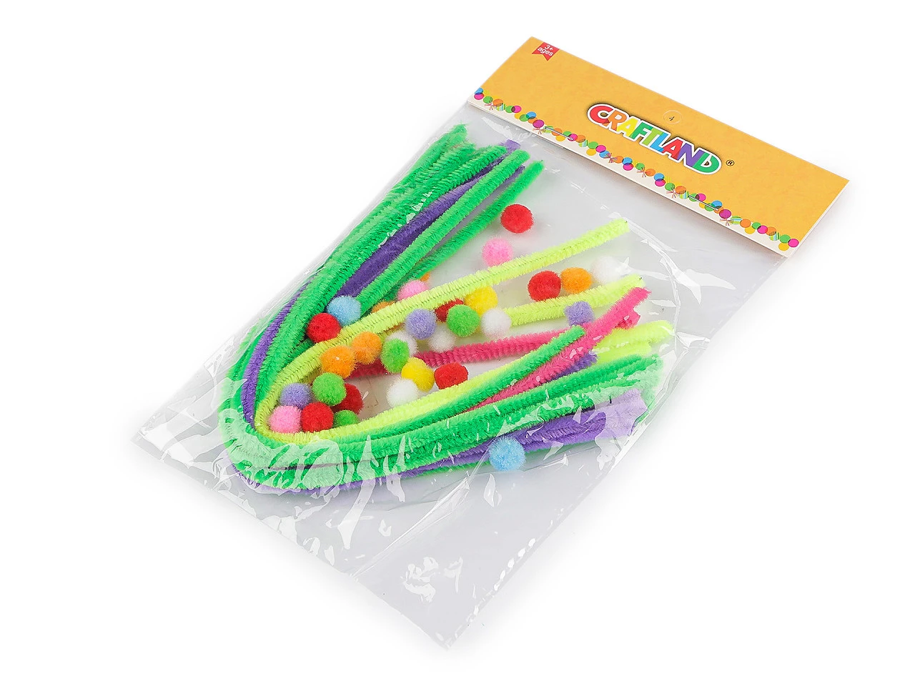 Sada obsahuje: 30 ks bambulek o O10 mm a 15 ks chlupatých drátků dlouhých 30 cm o O6 mm.