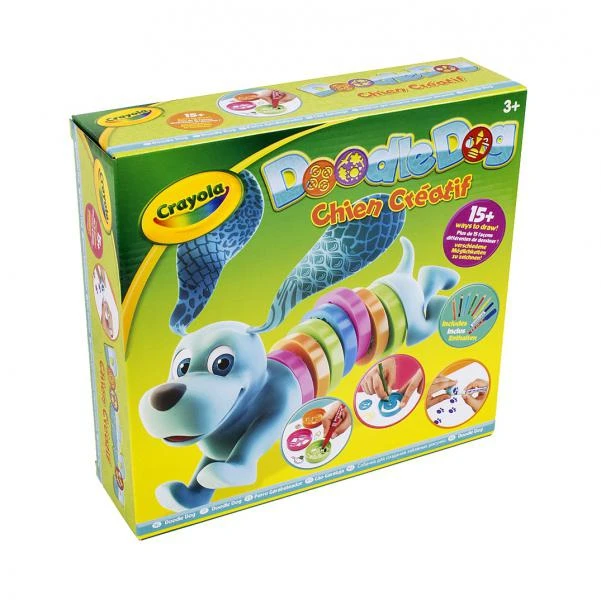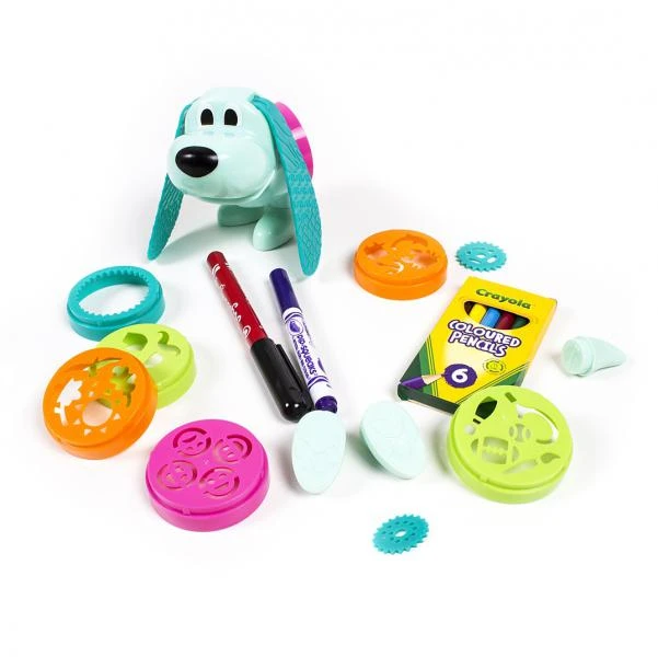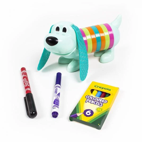 Kreativní sada Doodle dog obsahuje: pastelky, fixy, razítka a šablony. Vše se dá krásně složit a vystavit jako pejska.