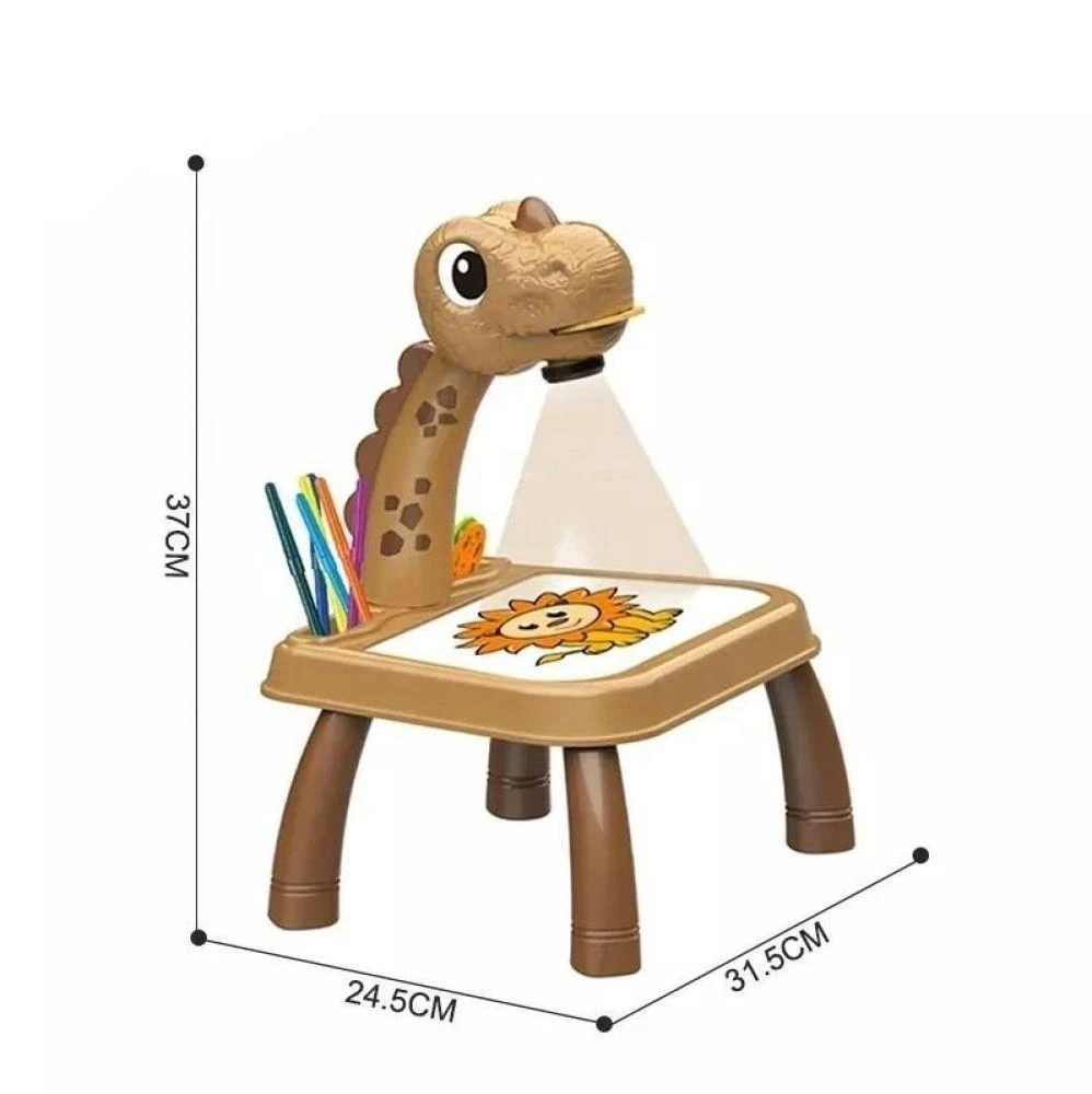 Kreslící projektor. Napájení na 2 AA baterie (nejsou součástí balení). Balení obsahuje projektor s motivem dina, 3 kotoučky s obrázky (celkem24 obrázků), 12 speciálních pastelek, hadřík a a malovací knihu. Po vložení kotoučku s obrázky do tlamy dinosaura se pomocí projektoru objeví obrázek na malovací ploše. Baleno v krabici.