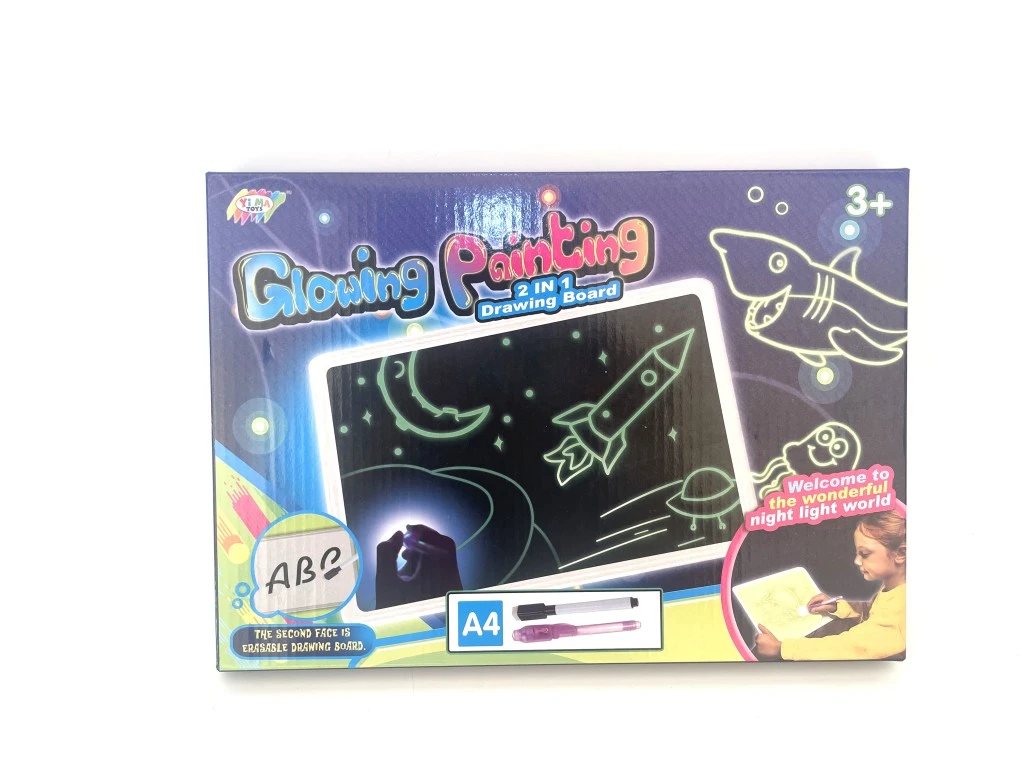 Kreslící tabulka svítící ve tmě je inovativní kreativní pomůcka určená pro děti od tří let, která nabízí zábavu i rozvoj fantazie bez nepořádku. Tabulka má rozměr A4 a její povrch umožňuje kreslení speciální svítící tužkou, která při kreslení vytváří světelné obrazce, jež po zhasnutí místnosti září v tmě. Díky tomu děti mohou tvořit „kouzelné“ obrázky, které je možné opakovaně mazat a znovu kreslit, čímž podporují svou kreativitu a představivost.