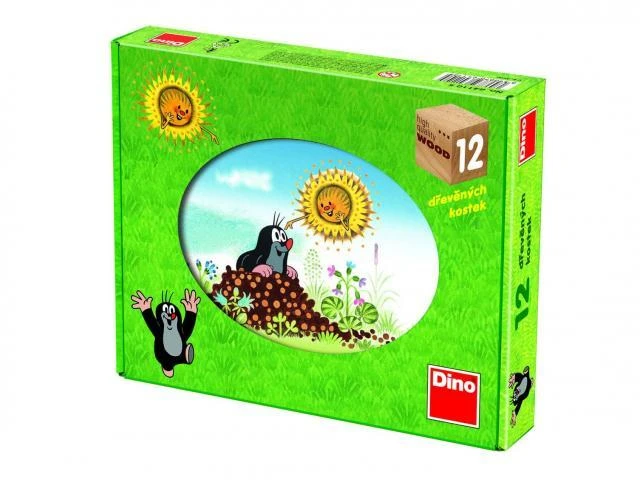 Krtkův rok - Dřevěné kostky - kubus 12 ks Dino