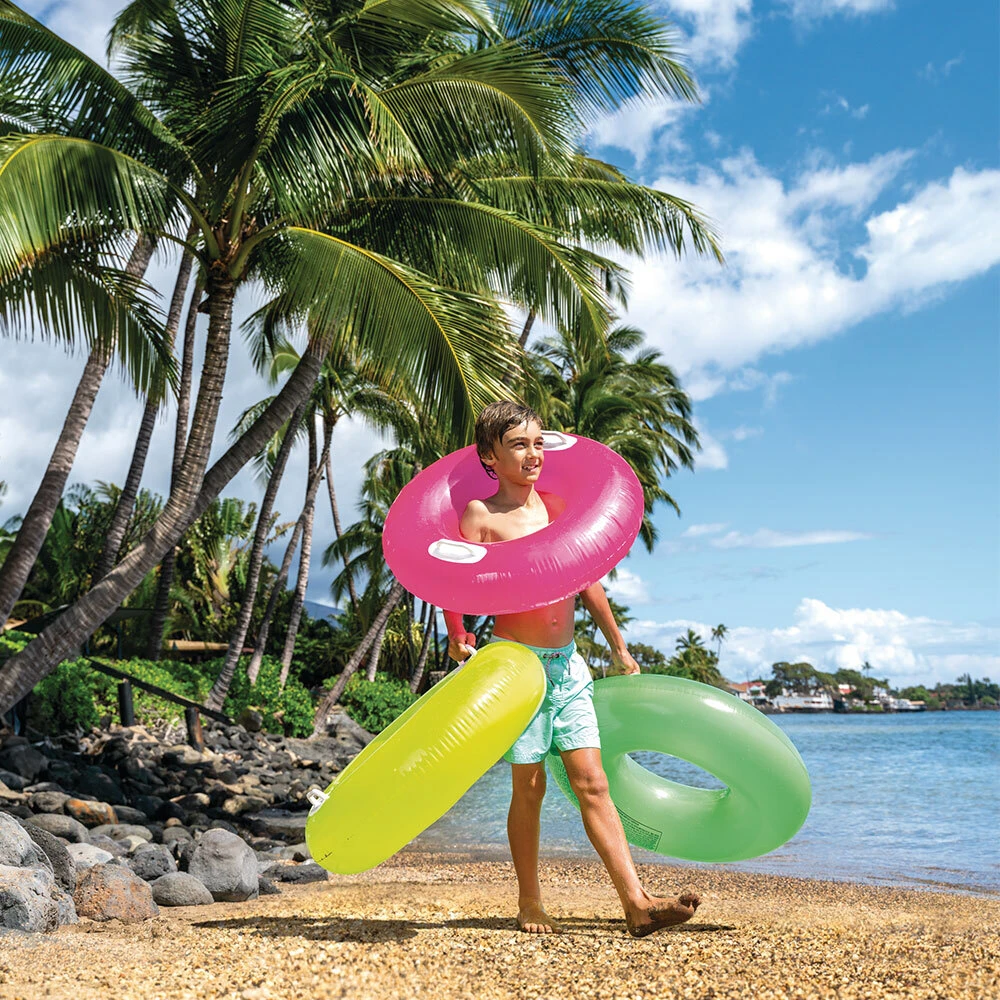 Moderní neonové barvy dodávají kruhu stylový vzhled, díky kterému budete na pláži i u bazénu nepřehlédnutelní. Skvěle se hodí k moři, na jezero i na koupaliště.