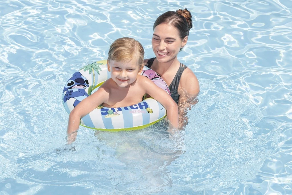 Kruh plovací Stitch s průměrem 56 cm je navržený především pro děti ve věku od 3 do 6 let a slouží jako bezpečná a zábavná pomůcka při vodních hrách. Tento nafukovací kruh je vyroben z pevného vinylového materiálu, který zajišťuje dostatečnou odolnost a dlouhou životnost při běžném používání ve vodě. Na jeho povrchu jsou zobrazeny veselě barevné a výrazné motivy postaviček z populární Disney série Stitch, což dětem dodává další prvek zábavy a atraktivity.