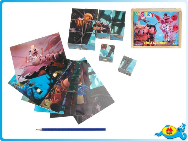 Kubus (kostky) dřevěné - Příběhy včelích medvídků (foto) II 12ks v krabičce