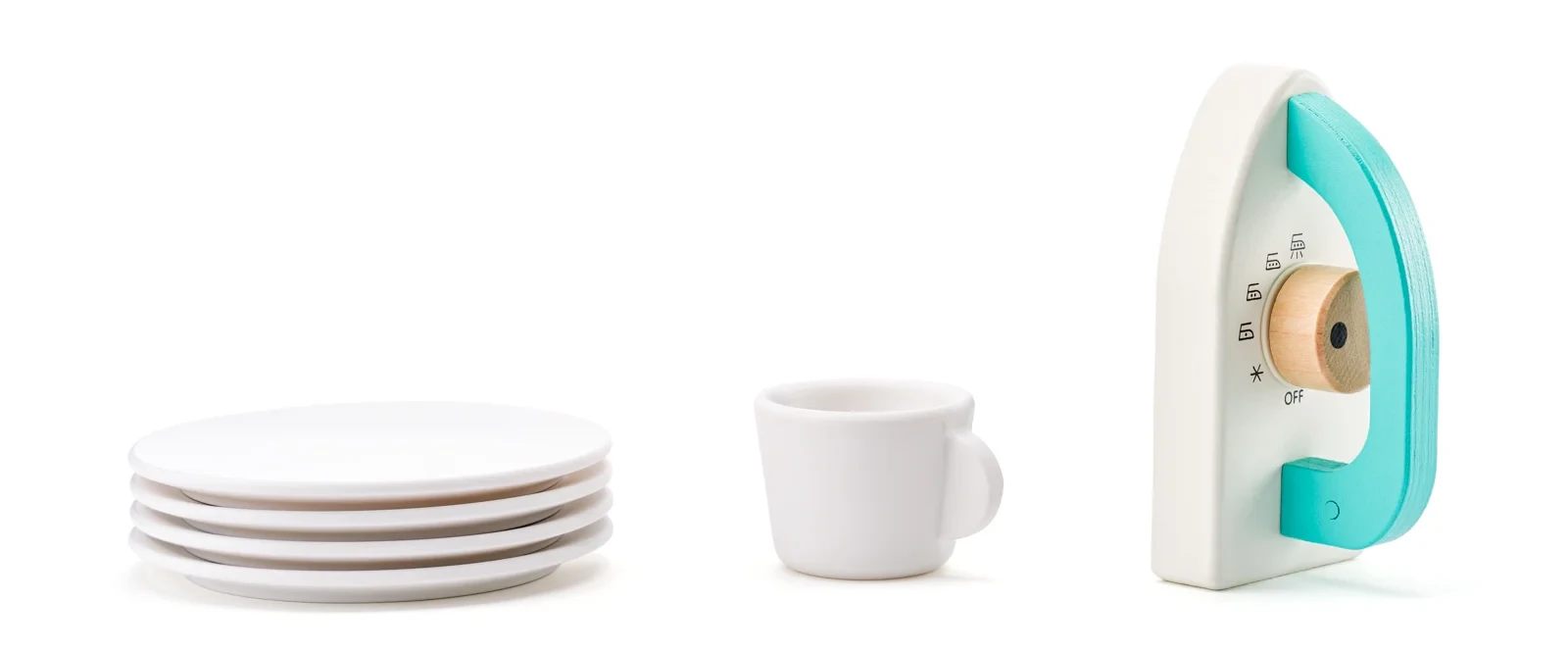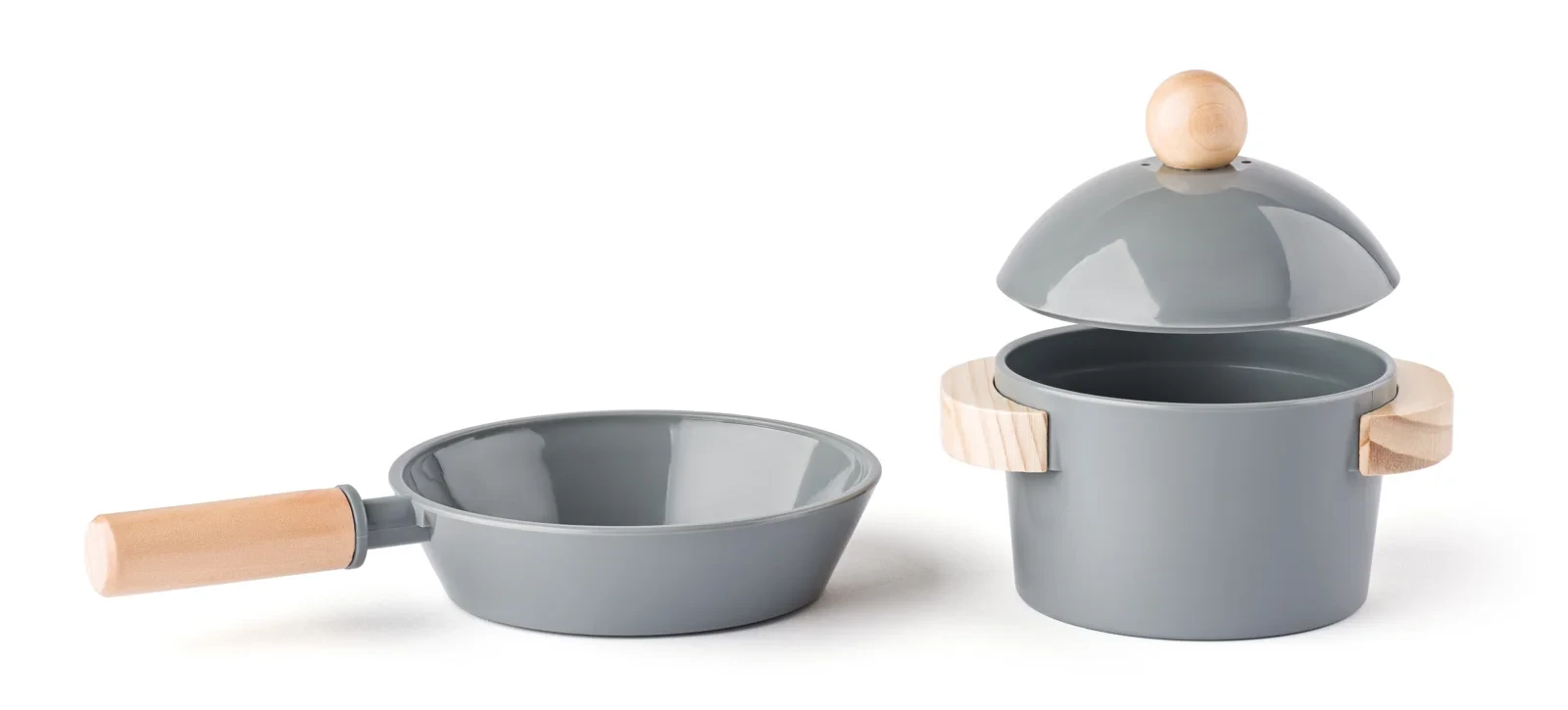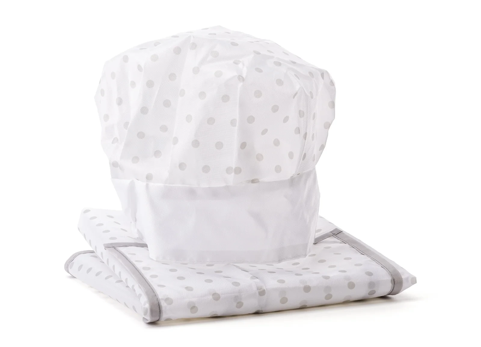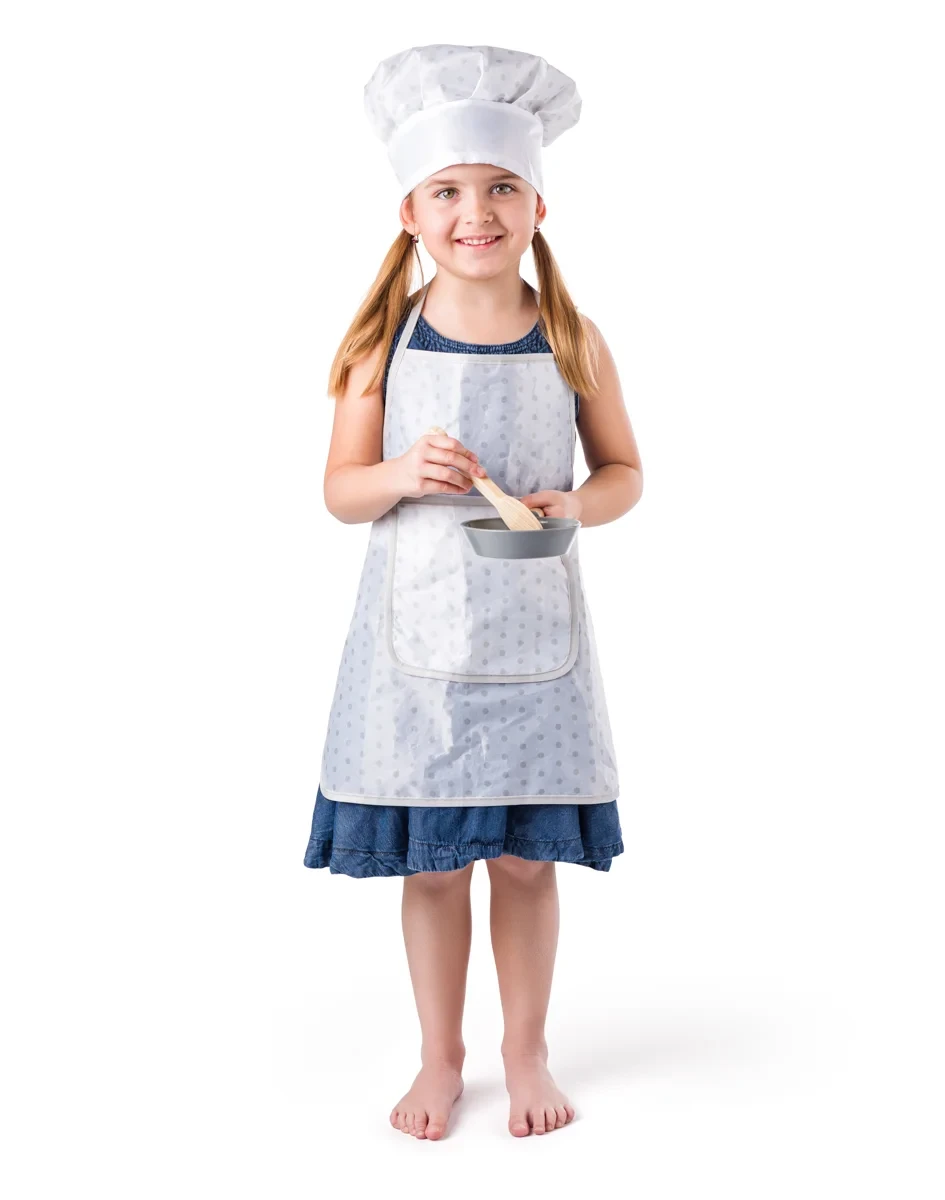 Příslušenstvím je nádobí z kvalitního plastu a dřeva a rovněž zástěra s kuchařskou čepicí.