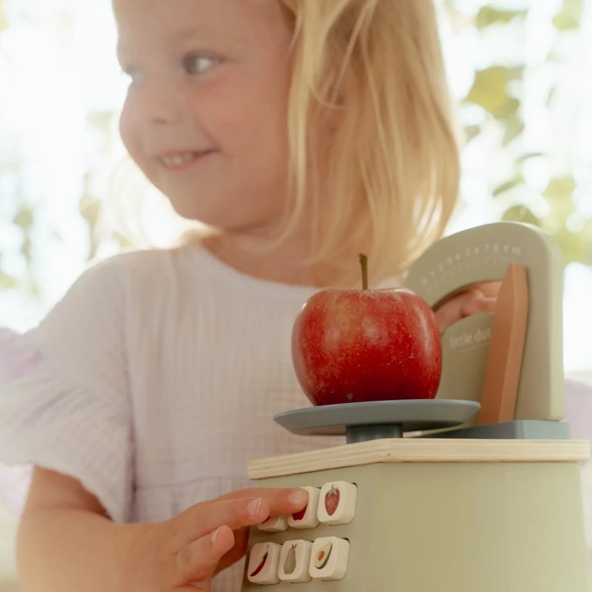 Váha bude skvělým doplňkem k dalším dřevěným hračkám Little Dutch, např. kuchyňce, prodejnímu stánku, krájecímu ovoci a zelenině apod.