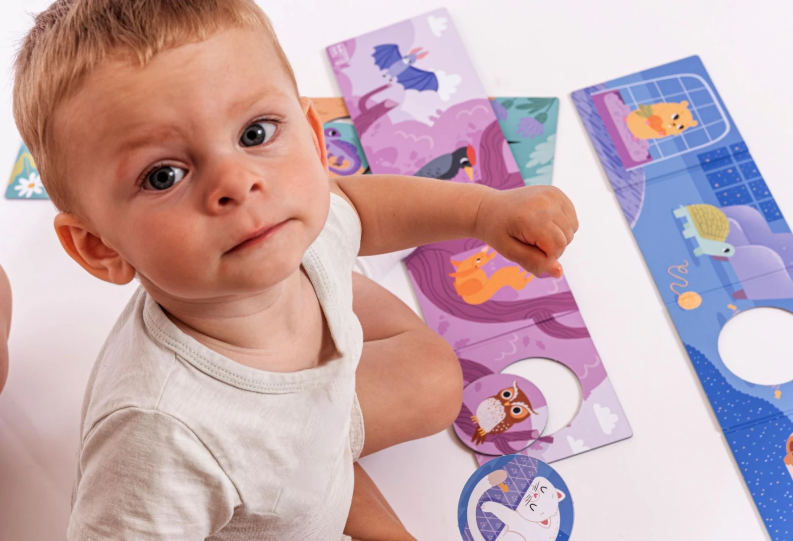 Řekněte jméno zvířátka a dítě je najde. Nebo naopak – ukažte obrázek a zeptejte se, jak se zvířátko jmenuje. Tím se rozvíjí slovní zásoba.